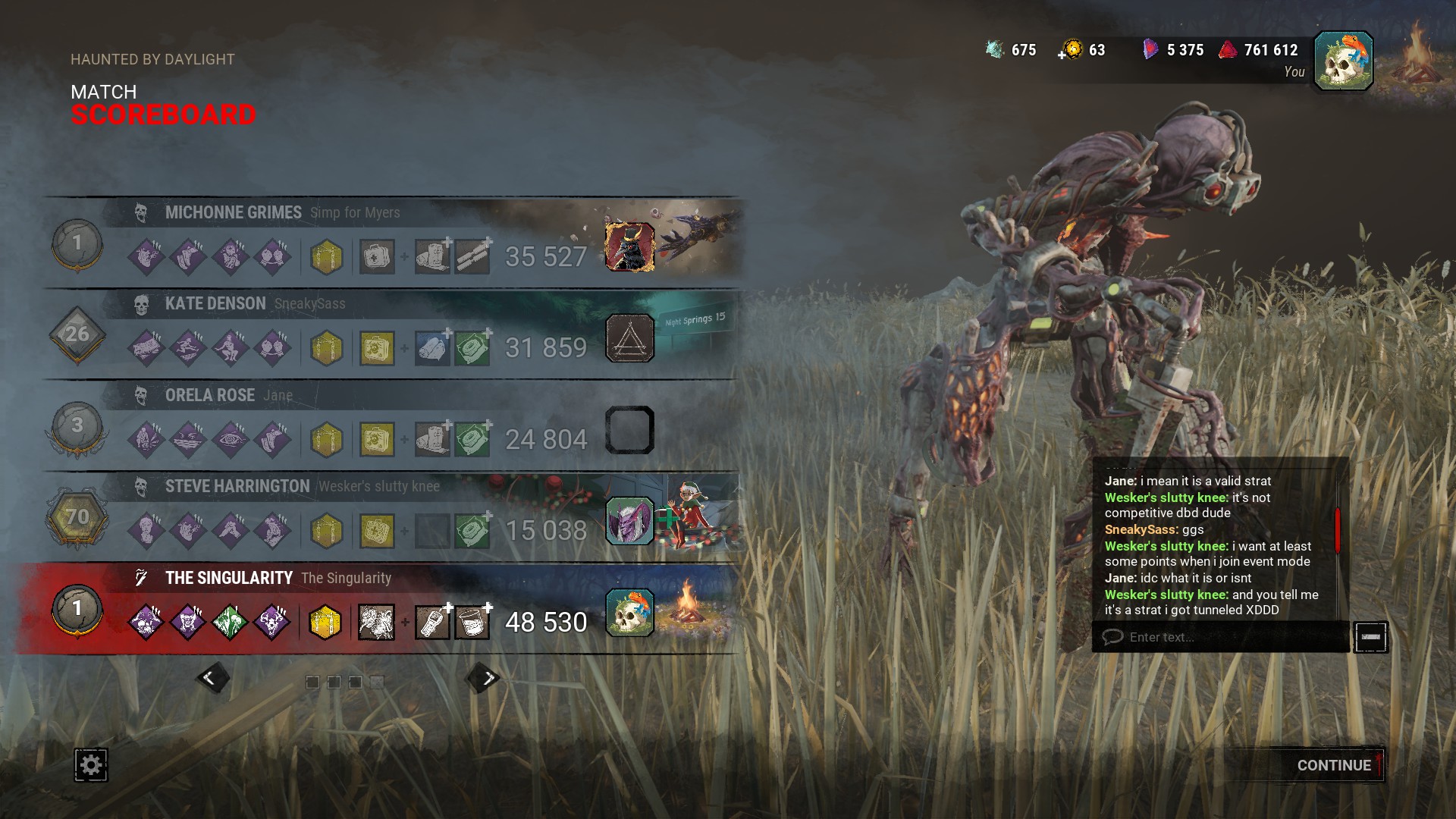 >let all 4 live every game in Halloween event because who wants to deal with sweats there>Cant even enjoy the chase because im paired with the most braindead players