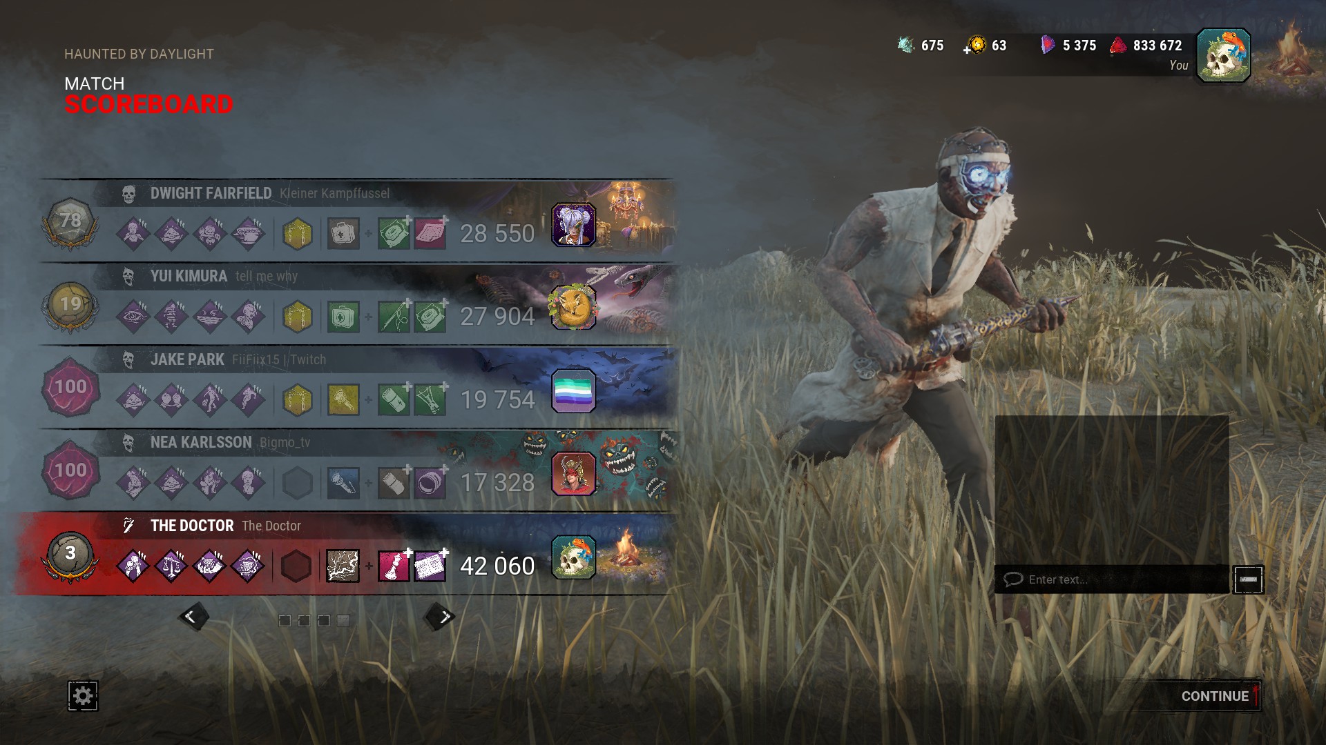 >Unforgettable Getaway: In a public match, repair the generator in the Chalet and live to tell the tale>repair the generator in the chalet>killer DCs>no achieve