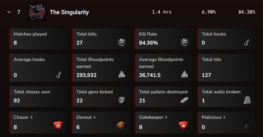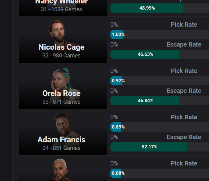 My top played killers have consistent killrate stuck at 64% Weird number