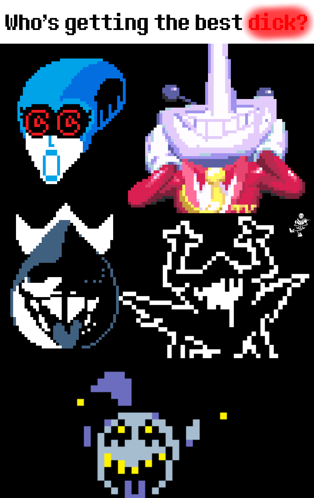 >>542957056Wow, Carol, Queen, Dess, Kris, the SOUL, Susie, and Mettaton gets to rape THAT?