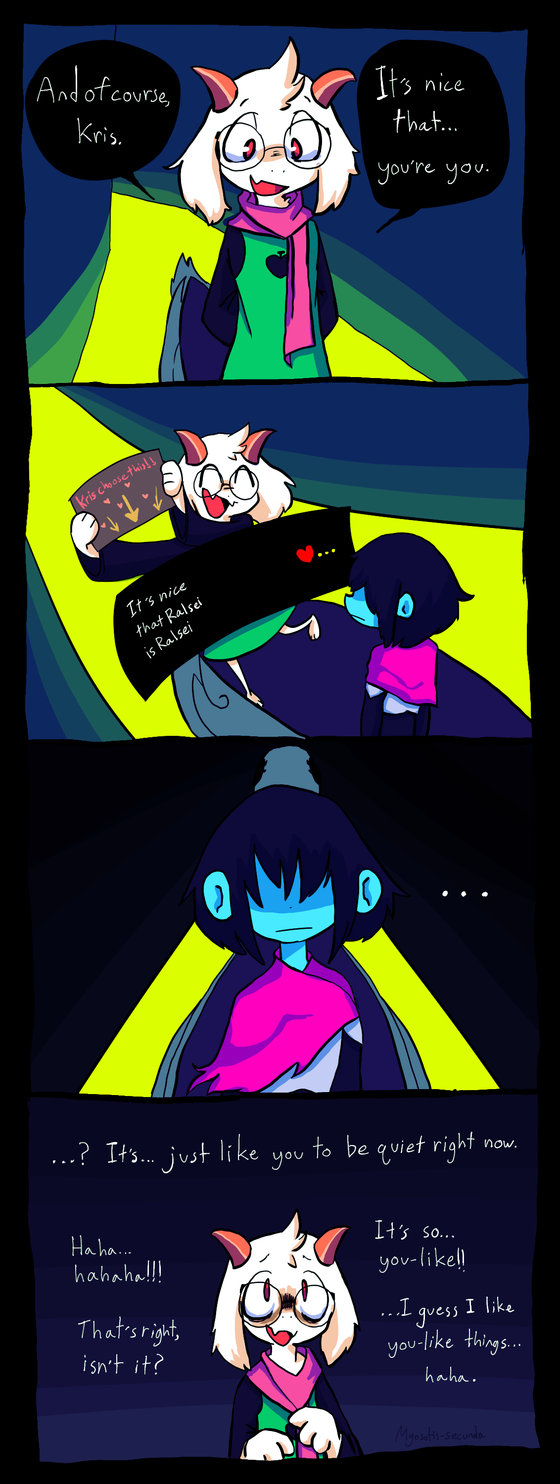 I'm a big fan of how Susie x Noelle isn't the only possible ship in the game, because there's also Noelle x Kris or Kris x Berdly or Susie x Kris.I mean we all know it's going to end with Noelle x Susie but at least Toby gave us other ideas