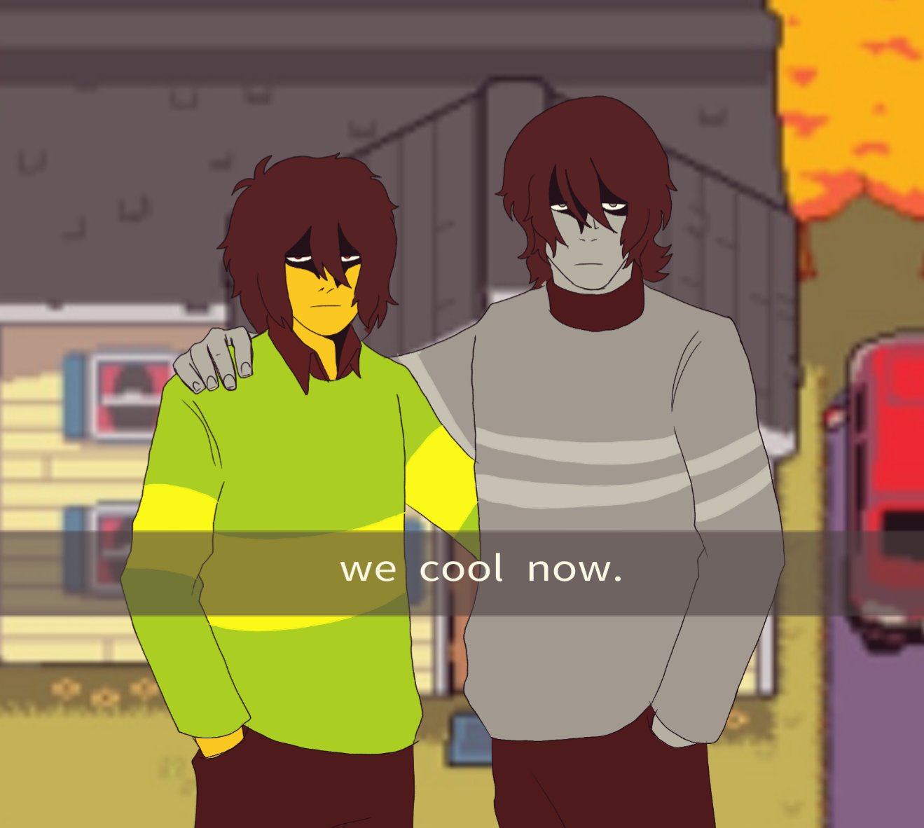 >>543019840>No, the hug is dependent on player choice.If it was, we'd have to give Kris the exact instruction to do so, since Kris would never do anything extra unless it was up his alley. >outright defy the mean option as they did earlier.This one really is a little blurry, but the way I see it, Kris did not catch onto the phrasing until it was too awkward to make amends. Kris is pretty socially inept, so it would take him a second to get what "Keep smiling" implied, so he'd blurt it out and then realize what he said. A hug would just be an insult to injury after that.
