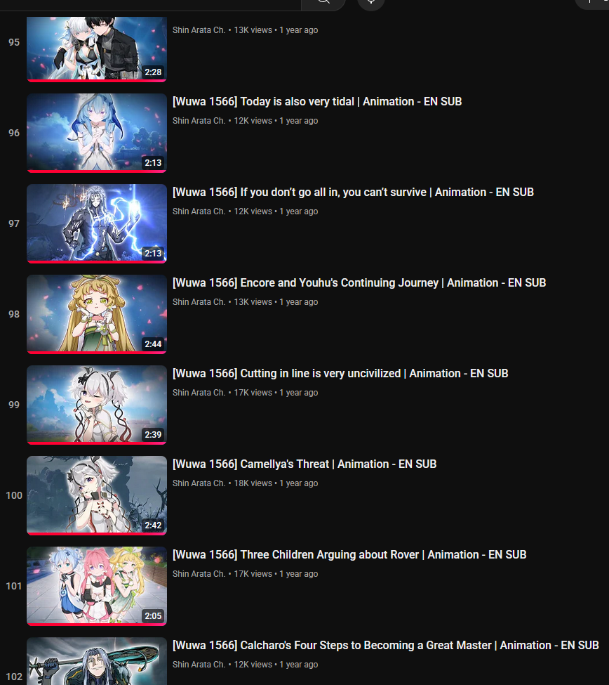 >>543006580Ah sorry I meant sub 20k viewsWhich is weak for a gacha that gets 100k+ views on EP and resonance showcase.