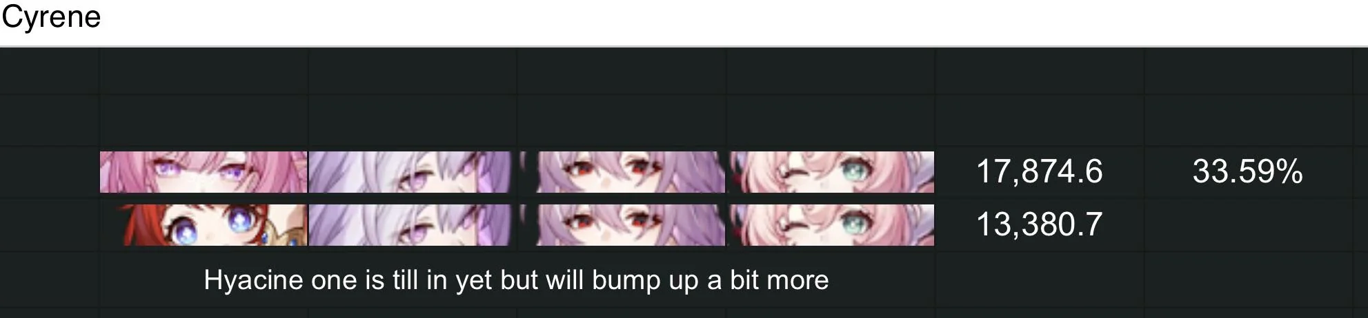 should I go Hyacine E0S1 and Cyrene E0S1 or just Cyrene E2should I go Hyacine E0S1 and Cyrene E0S1 or just Cyrene E2