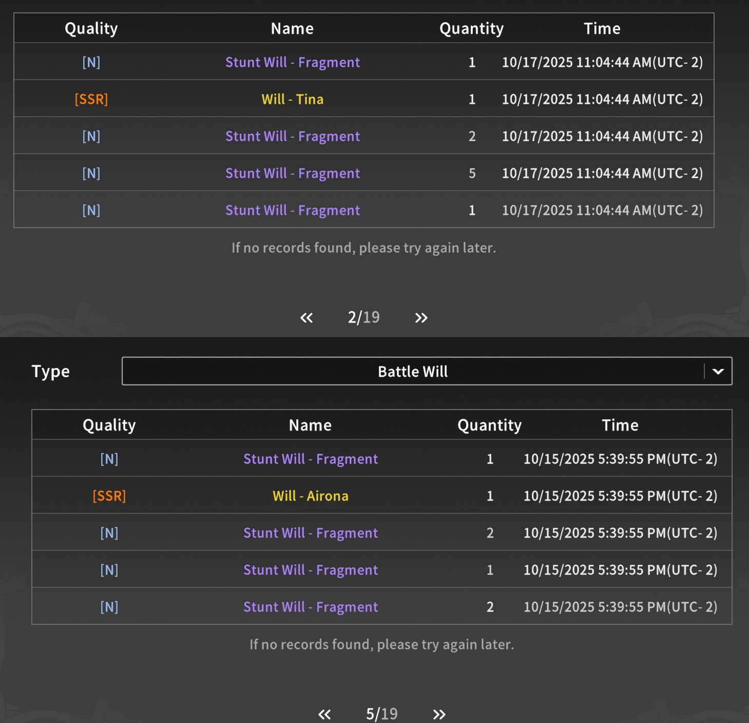 >>542996464What's going on hereIt told me I couldn't get any more SSRs once I hit my first Tina.I have a literal count-down saying " 3 days untill you can pull again" or something.