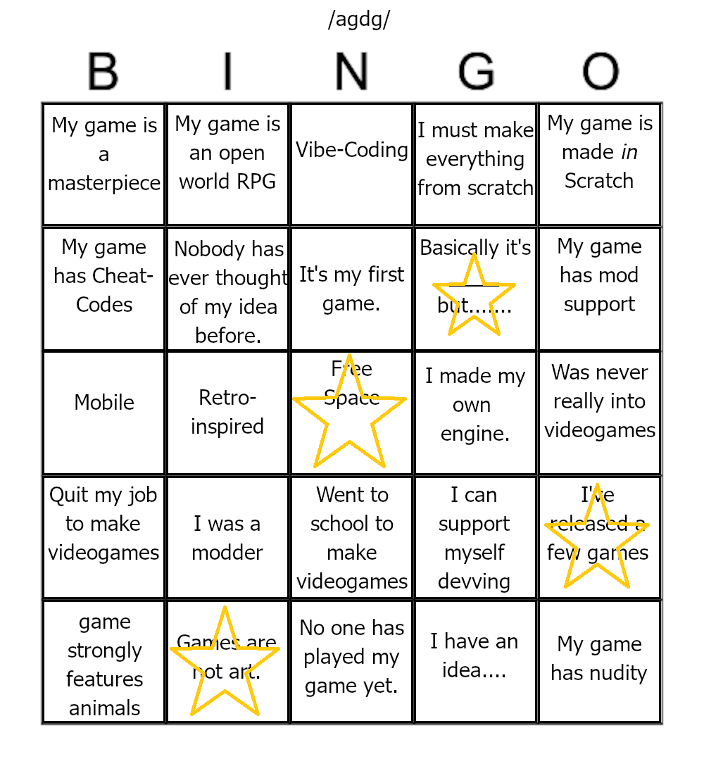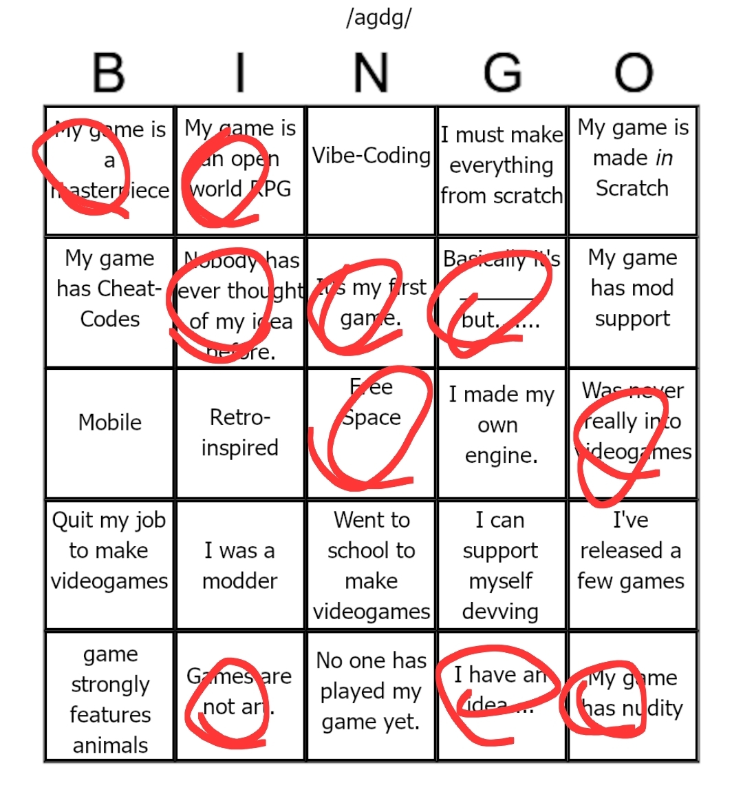 Good day gamedev dears!I'm so happy to be able to make games (vibecoded in Java of course).What do you hope to achieve today?