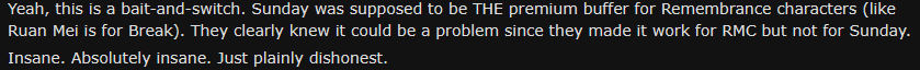 This is exactly why they are doing that. So you pull a midpoint brick like tribbie (rerunned and shilled just weeks before Evernights showcases) and then you're either stuck with that brick and have to cope and suffer or you pull an actual meta a second time. New and returning players are on the other hand have that easier because they'll go straight for cyrene+heir they want, unless they don't research and fall for the coping shill