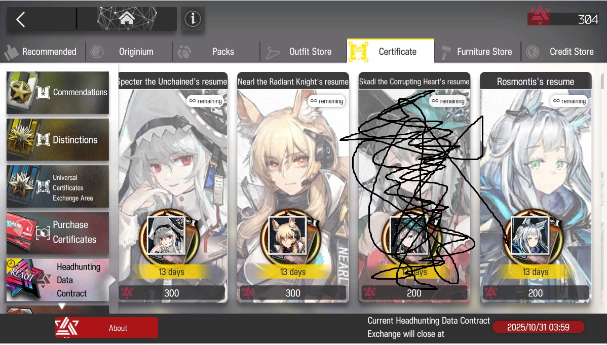 Previous thread: >>543049472Happy birthday to Magallan and Snowsant!>CURRENT, FUTURE GLOBAL/JP/KR CONTENT:[10/14-11/4]The Masses' Travels - 6* Defender Sankta Miksaparato, 1* Vanguard Confess-47[10/14-10/28][Freedom of Preach]6* Specialist Exusiai the Covenant, 6* Sniper Lemuen, 5* Guard Gracebearer[10/14-10/28][Log-In]PhonoR-0 Skin[10/14-11/11][Iteration Provident, EPOQUE, Achievement Stars, Test & BoC]Wiš'adel, Mlynar, Archetto, Mizuki, Fiammetta, Cantabile[10/14-11/11]Reselling a bunch of skins[10/14-10/30]Duel Channel: Green Grassville>CURRENT, FUTURE CN CONTENT:[10/9-10/23][Standard]6* Guard Zuo Le, 6* Medic Reed The Flame Shadow (Shop), 5* Specialist Figurino, 5* Specialist Wulfenite, 5* Vanguard Blacknight (Shop)[10/6-10/20][0011]Figurino[10/6-10/20][0011 Re-Edition]Wind Chimes[10/9-10/23]EP16: Abnormal Spectrum - Windscoot skin[10/9-10/23][The Silent Wavelengths]6* Caster Mantra, 5* Defender Vetochki, 5* Guard Wind Chimes, 4* Vanguard Snegurochka[10/9-10/23][Storyboard Breaker]Narantuya, Mitm, Greyy The Lightningbearer, Haze[10/9-10/23][Witch Feast Re-Edition]Degenbrecher, Blaze, Bassline, Popukar; Fiammetta, Dorothy, Quercus, Whisperain>/akg/ website:https://akgcc.github.io>AK EN Database:https://puppiizsunniiz.github.io/AN-EN-Tags/akhrchars.html>More valuable resources:https://rentry.org/akg_resources>/akg/ merch guidehttps://rentry.co/akg_merch