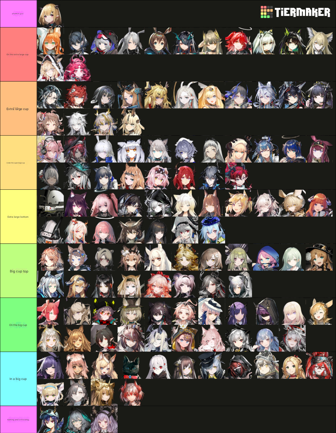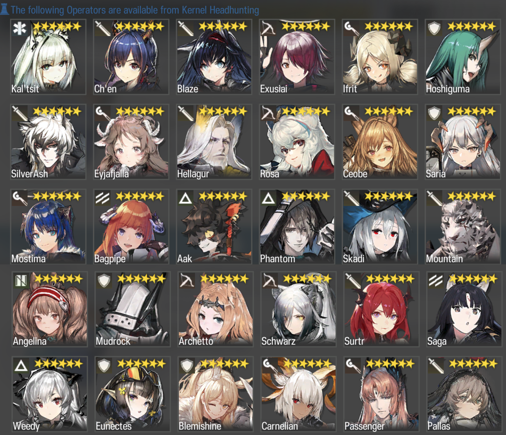 >>543091624I'd probably also suggest Kal'tsit. To this day I'd say, besides arguably Amiya, she is the easiest applied true damage source in the game, possible tied with Mon3tr(which is because even with Kal it's Mon3tr doing the damage).I'd argue she is easier to apply where you might want true damage, because all you need is Mon3tr next to what is being too durable, while Amiya's ranged S3 might be led astray with various targeting effects.>>543091885Right, with that context I'd might instead say Ceobe, Saria, SilverAsh, Surtr, Eyja or Ifrit. Leaning more towards the casters.Ceobe is likely a solid choice, her thing is doing more damage based on enemy DEF, which means he true power might not show until you have targets that are really chunky.I assume that's a bought account judging by the lineup of limiteds? Pretty solid additional lineup with both the followers, Thorns, Horn, Ines and Suzuran.I'd say among them, conventional arts damage is their weakest point, so I'd make my final suggestion Ceobe or Surtr.Surtr for context is a guard with an anti death talent, and a skill 3 that gives her 5k hp, multi targeting, a massive ATK up and starts losing HP faster and faster, all with 5sp cost. You throw her at most anything and it goes away.Is gameplay performance your main concern or does personality play into your decision?>>543092286Wait, what are we getting free Surtrs from?