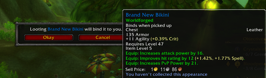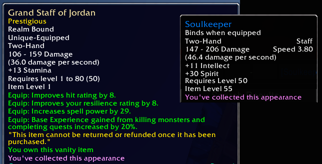 >>543080665correct, the only good part about them is the xp bonus and the mana/health reg on kill on the trinket, but otherwise you don't want to wear them because they're dogshit unless you're 10 levels behind on gear