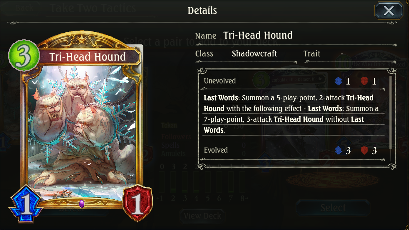I remember bitching a lot about sinciro release being able to deal 8 to face with superevoBut then i did a retrospective and looked at cerberus and it is like, this card is so fucked up when you put it side to side to sinciro it is not even close>deal 7 to face, or heal for 7 ON DEMAND>if just a SINGLE follower sticks that 7 damage becomes 15and then i realized sinciro is a fair card