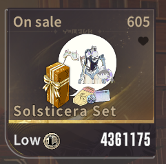 solsticera is going for 4,361,175 luno on the market.my average unbound luno earned is 100,000 approx every 2 days7 / 2 = 3.5 (rounded down to 3)300,000 approx a week, give or take some extra luno.that's 1,200,000 a monthand to get it to the desired 4.3m mark, that'll take me 3 and a half months, or 16 weeksand that's not even the best partthe banner has a guarantee drop at 80 rollseach roll costs 1 meowlux wish coin1 mwc can be bought from the cash shop for 150 unbound orbs150 * 80 = 12,000 unbound orbs 6,480 unbound orbs is the maximum you can purchase at once, at $99.99it would cost you $200 to guarantee a dropif you aren't a rich whale, HOW THE FUCK are you getting this outfit?