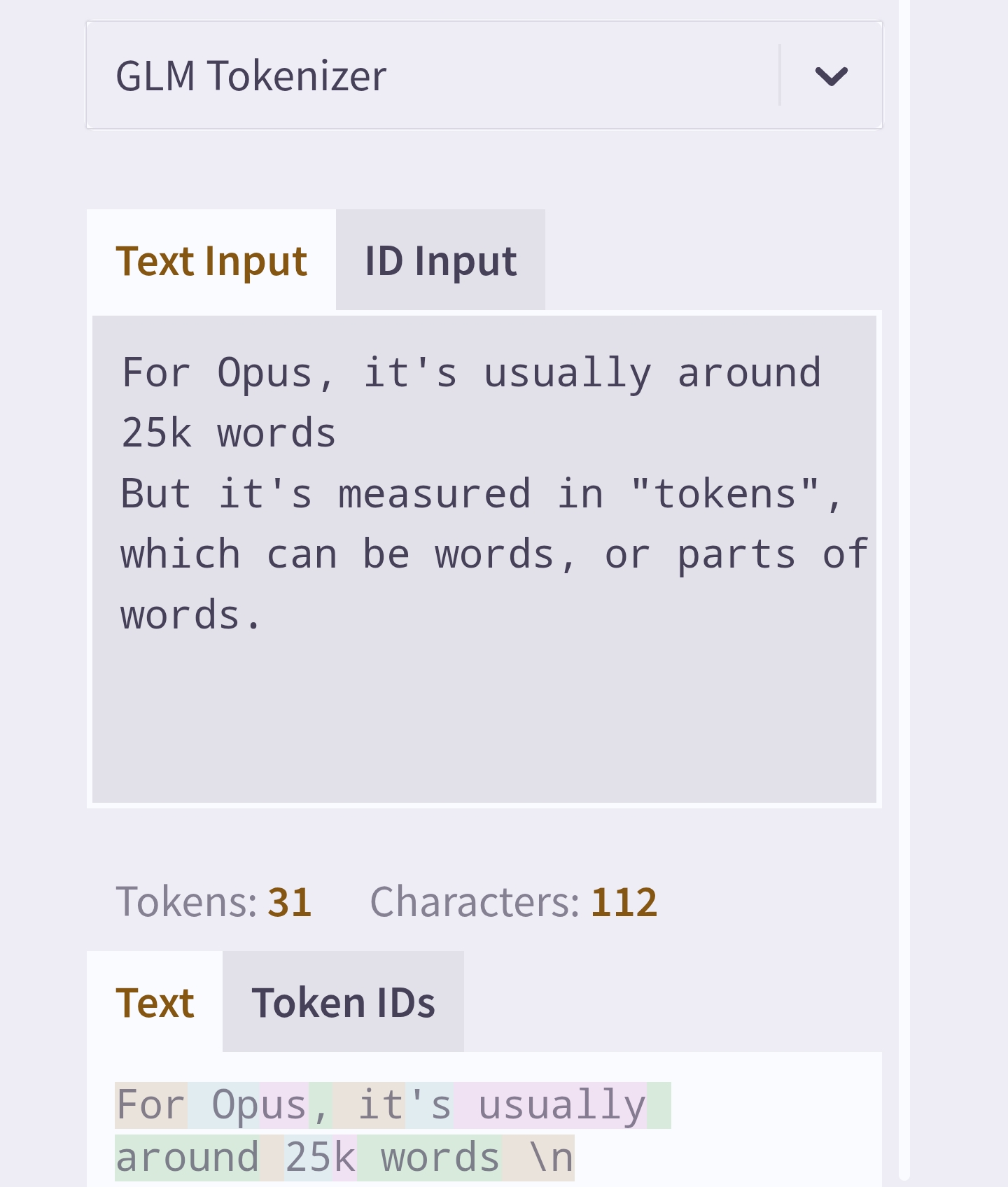 >>543839286For Opus, it's usually around 25k words when I'm writing.But it's measured in "tokens", which can be words, or parts of words.
