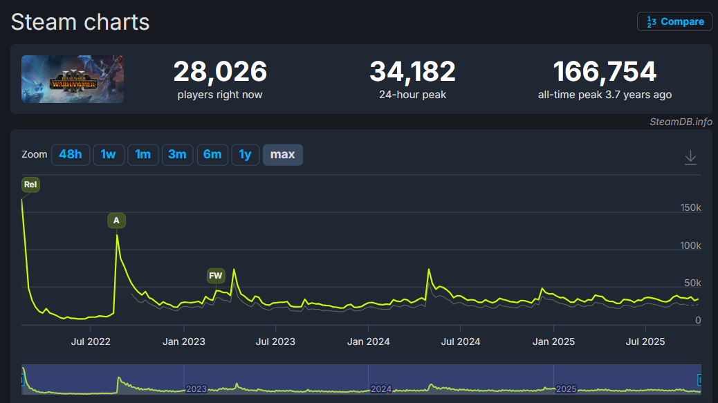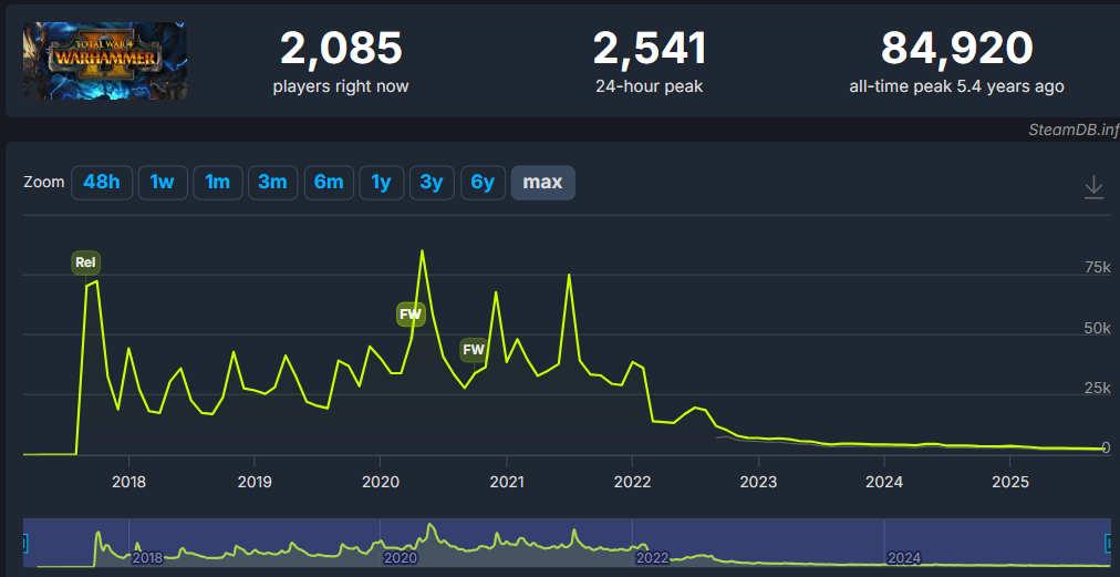 >>543232247>that peak at about 20k in 2022 after WH3's RoC shat the bedTCALUK, please never do such gamemodes again.