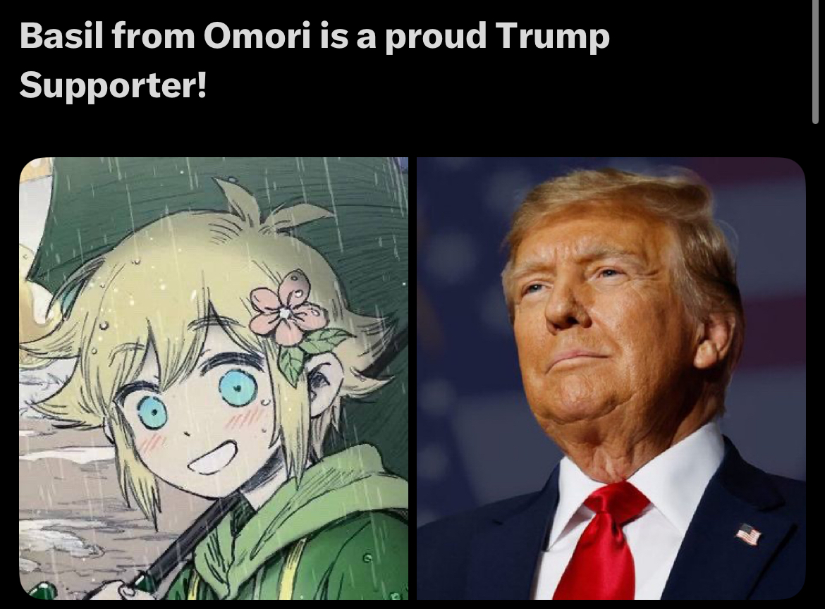 >>543482545Mari is Sunny's "friend"? Mari and Hero are just friends? Sunny doesn't have a one-sided crush on Aubrey? Basil doesn't have a gay obsession with Sunny? Kel didn't admit to picking on Aubrey as a kid because he thought she was cute, and Mari didn't compare them to herself and Hero when she was putting bugs in Hero's desk as a 12 year old? They are not drawn in a way that reflects the above dynamics in most official pics?You can't possibly be this dense.