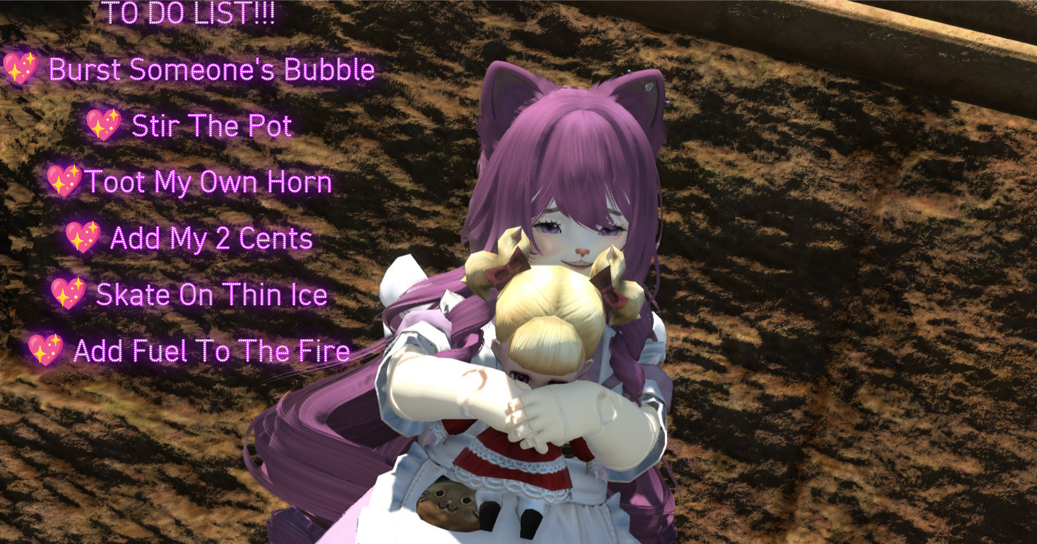 you mfers are weirdI've always used /embrace to hug normies in the game and all of them who have it do it toobut then xivgers think it's too intimate or whatever and you can only /pet
