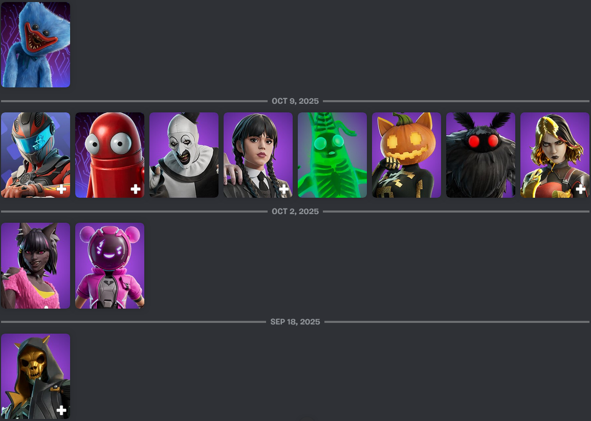 In tonights shop, next week should be when the rest of the original skins finally release with repo and shart the clown somewhere inbetween