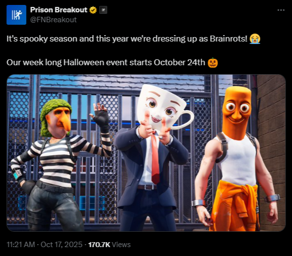 >Fortnitemares 2025 Gameplay Trailerhttps://www.youtube.com/watch?v=AlABOZhCCqU>Fortnitemares 2025 Cinematic Shorthttps://www.youtube.com/watch?v=ieVR7iSGXDs>Fortnite Battle Royale Chapter 6 Season 4: Shock 'N Awesome | Launch Trailerhttps://www.youtube.com/watch?v=yGqbypEMcVA>Bad Bugs vs Power Rangers in Fortnite BR: Shock ‘N Awesome | Live Action Trailerhttps://www.youtube.com/watch?v=7ZIbokU9tRg>Bad Bugs Bite the Bullet in Fortnite Battle Royale: Shock ‘N Awesome!https://www.fortnite.com/news/bad-bugs-bite-the-bullet-in-fortnite-battle-royale-shock-n-awesome>Quests, stats, shophttps://fortnite.gghttps://fortnite.gg/statshttps://fortnite.gg/shophttps://www.fortnite.com/item-shop>LEGO XP AFK Strategyhttps://pastebin.com/YdrVy46s>Season XP Leveling Pacehttps://www.fortnitexp.net/>Mission Alerts for StWhttps://freethevbucks.com/timed-missions/https://fortnitedb.com/>Fortnitemares 2025: A Terrifying New Cast of Horror Iconshttps://www.fortnite.com/news/fortnitemares-2025-a-terrifying-new-cast-of-horror-icons>Fortnite’s Mixtape Music Pass Brings 10 New Jam Tracks!https://www.fortnite.com/news/fortnites-mixtape-music-pass-brings-10-new-jam-tracks>Bringing Hero Classes to Odysseyhttps://www.fortnite.com/news/were-merging-lego-fortnite-expeditions-with-odyssey-by-bringing-hero-classes-to-odyssey>Fortnite Ballistic v37.10 Adds the Veiled Precision SMG, Deployable Wall Gadget, and Morehttps://www.fortnite.com/news/fortnite-ballistic-v37-10-adds-the-veiled-precision-smg-deployable-wall-gadget-and-more>Fortnite Crew October 2025 - Hana Parkhttps://www.fortnite.com/fortnite-crew-subscriptionPrevious:>>543135612