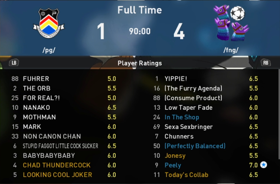We play against /gig/ for the finals nowhttps://cytube.implying.fun/c/vgleague