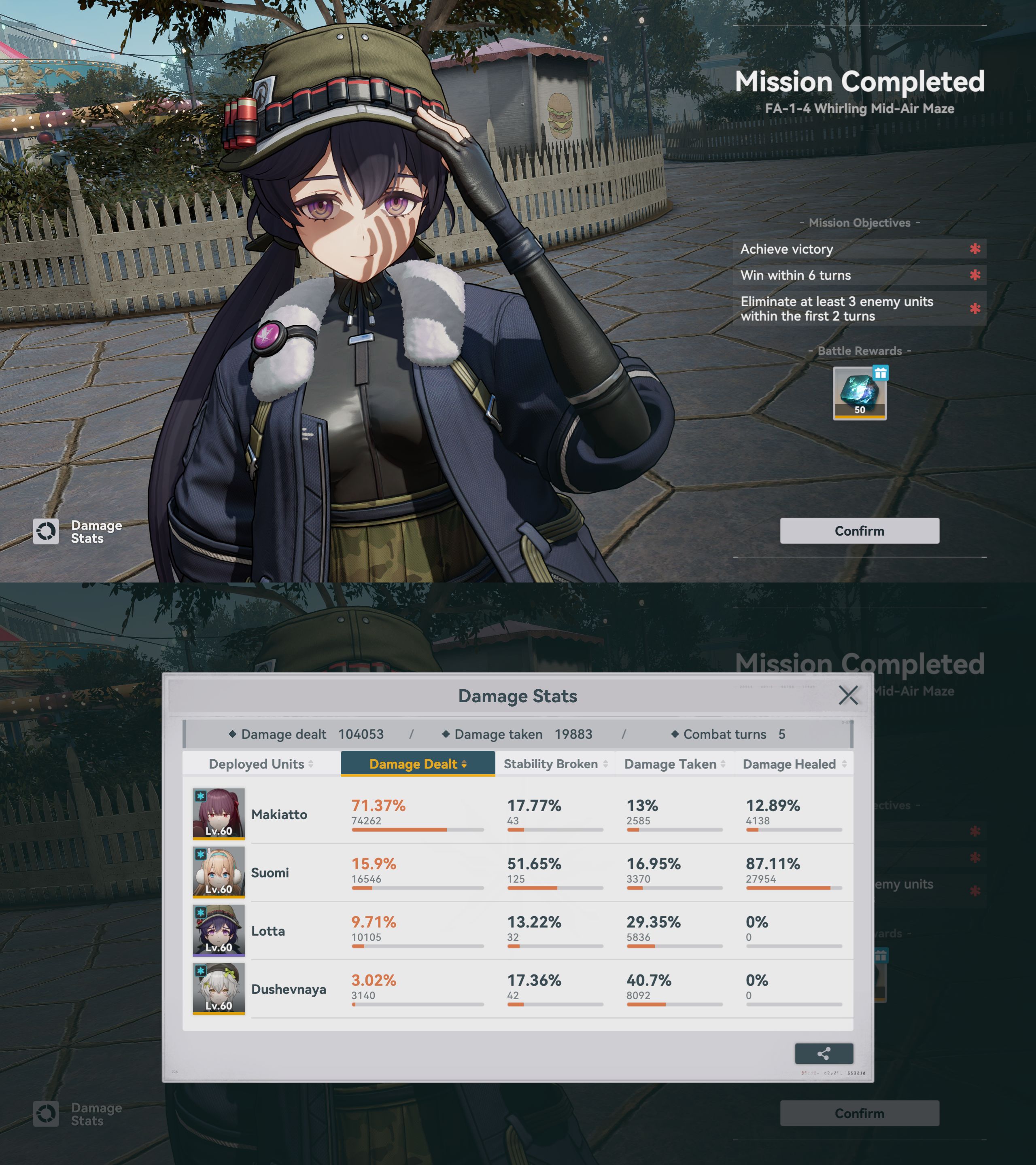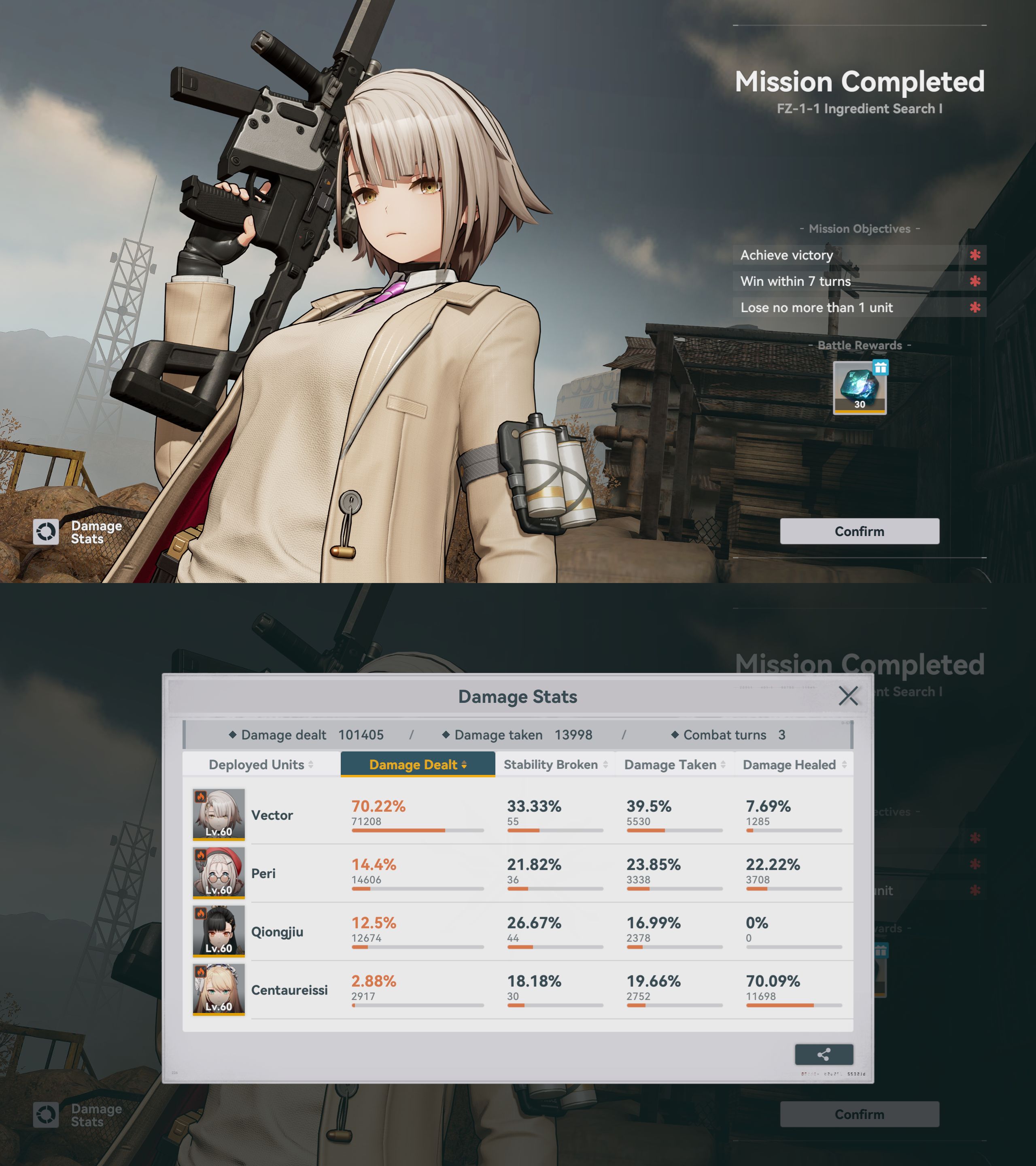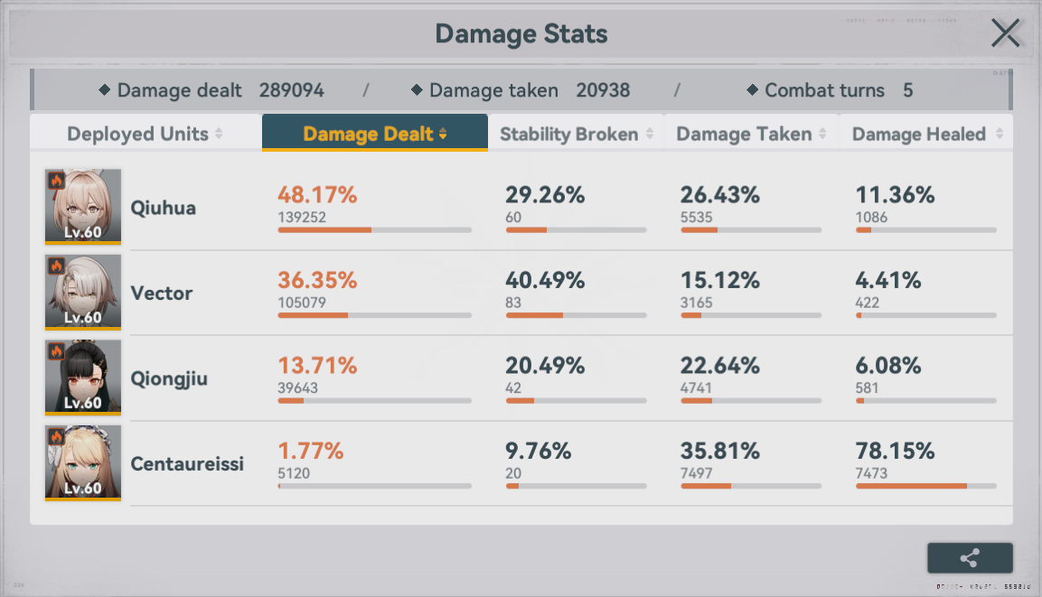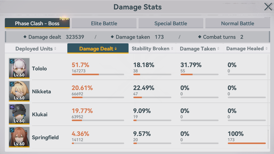 Thank you to the advice yesterday for FA-1-6 heroic, I couldn't really execute it that well so I was flopping with Dololo and Springfieldo. I went back to my fire team and I found a way to nuke the adds and Florence in the first 3 turns that let Vector, QBZ and Meido finish off the last bot in the back during turns 4-5. RiP Captain China your sacrifice was NOT in vain