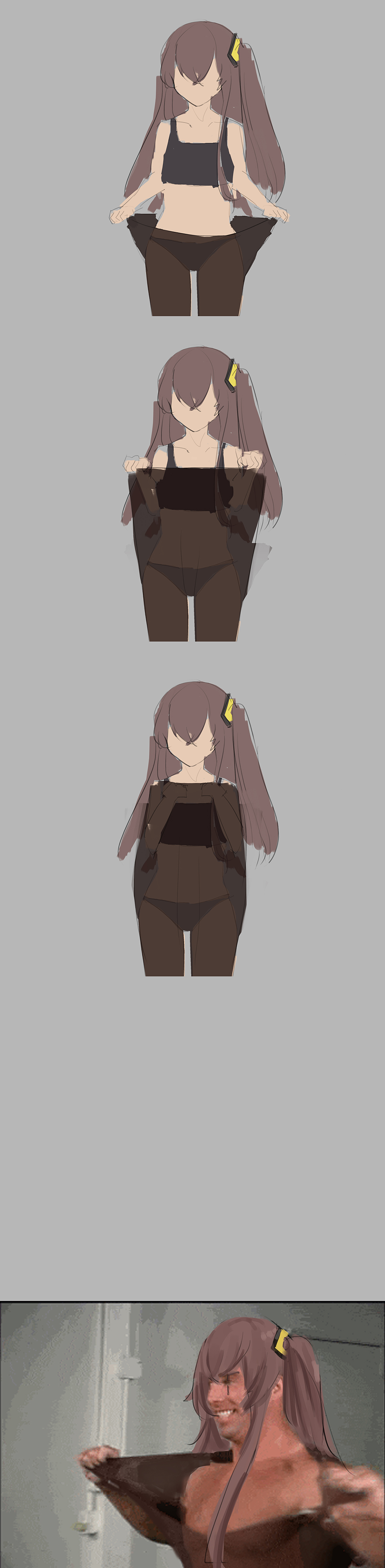 >>543270402that's not how hair works bro, it's not brush bristle. Also the hair from the back is also antigravity.
