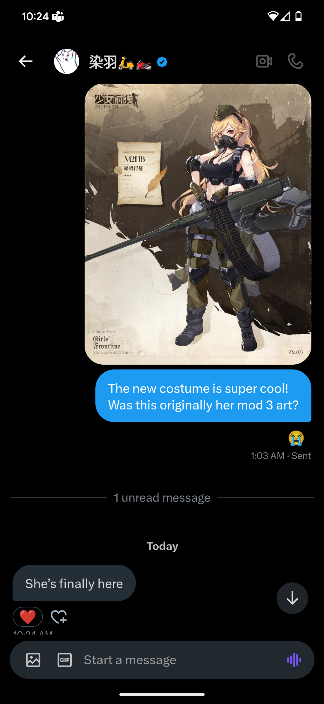 This is Judge from the hit Chinese mobile game, Girls Front Line Line(GFLL)