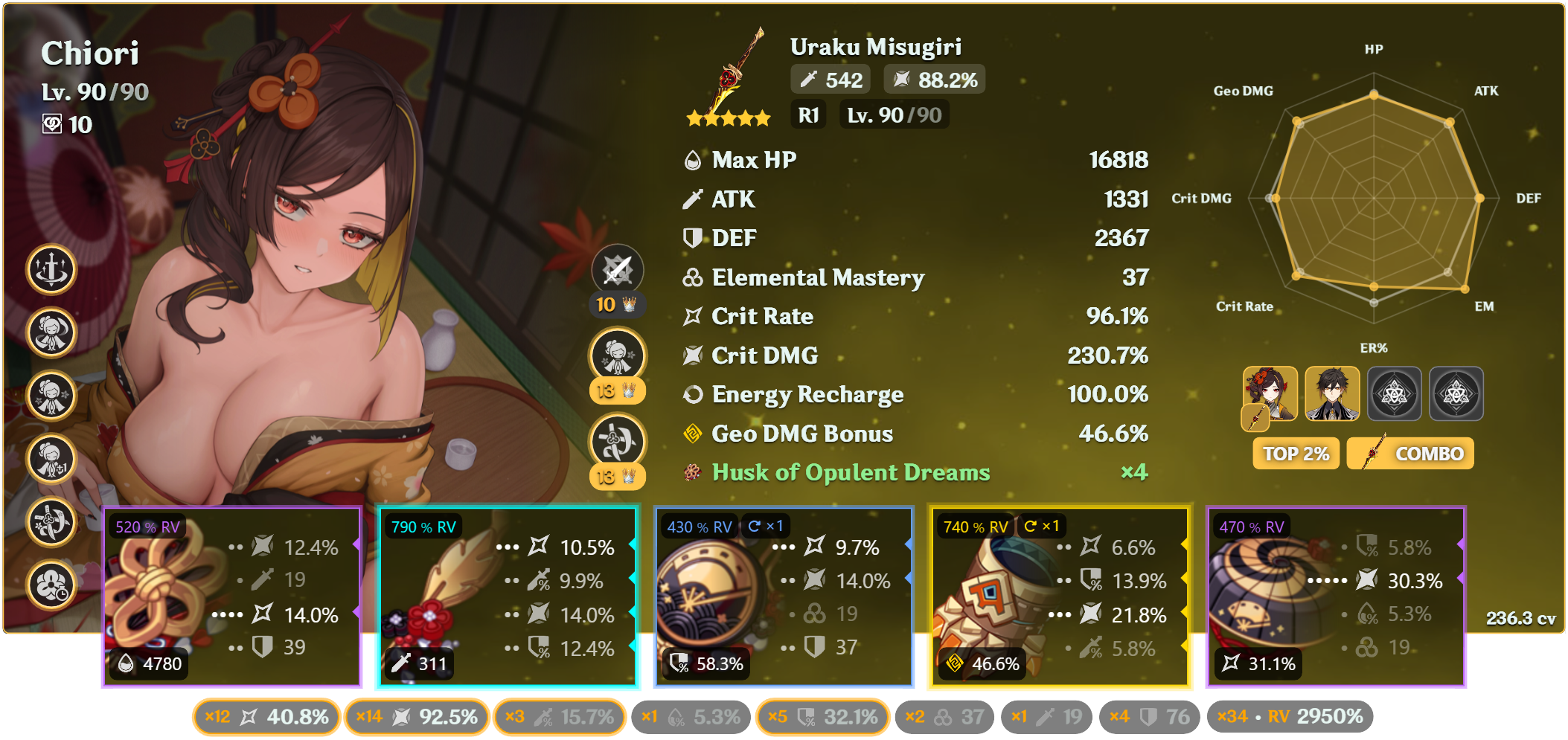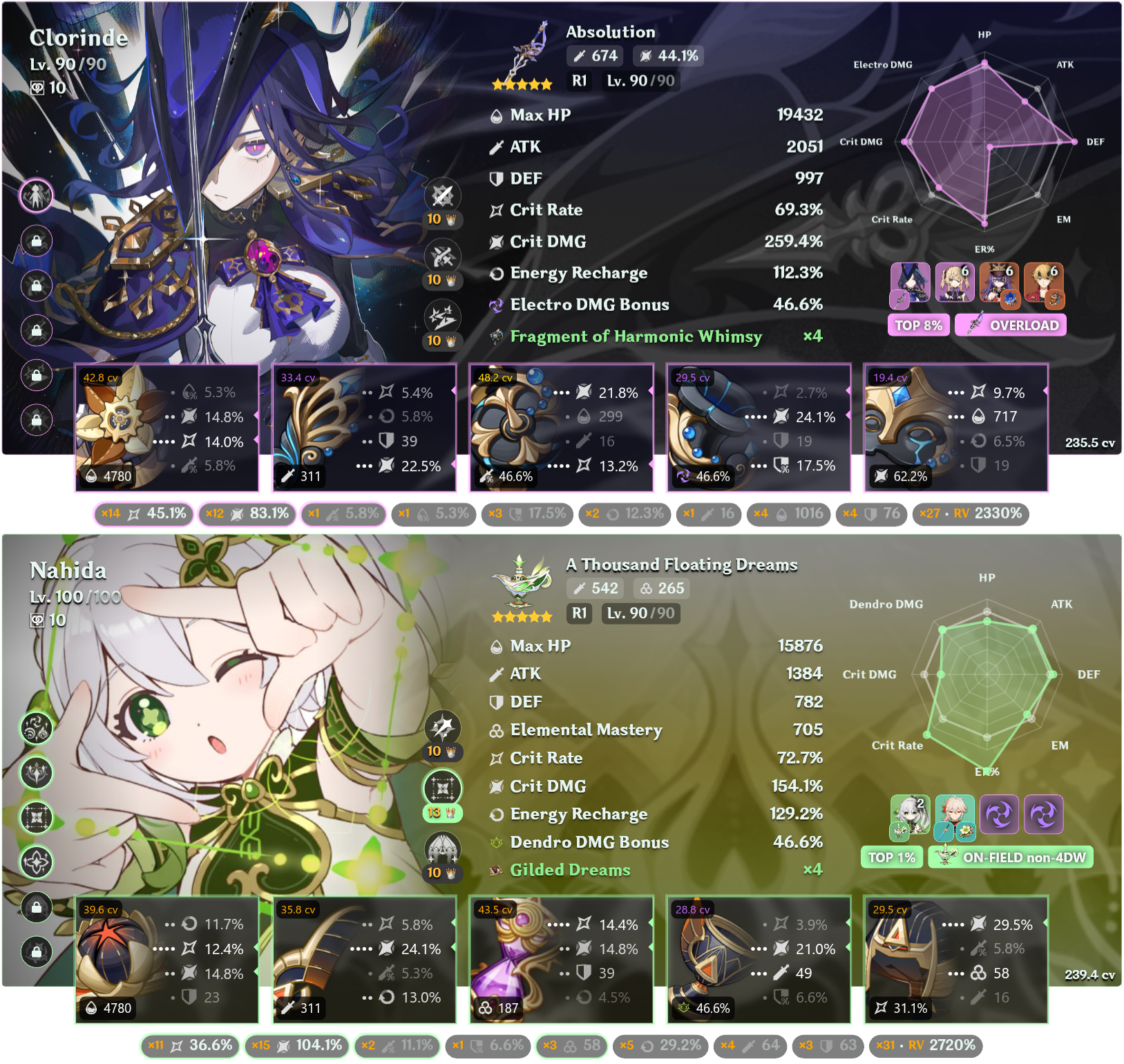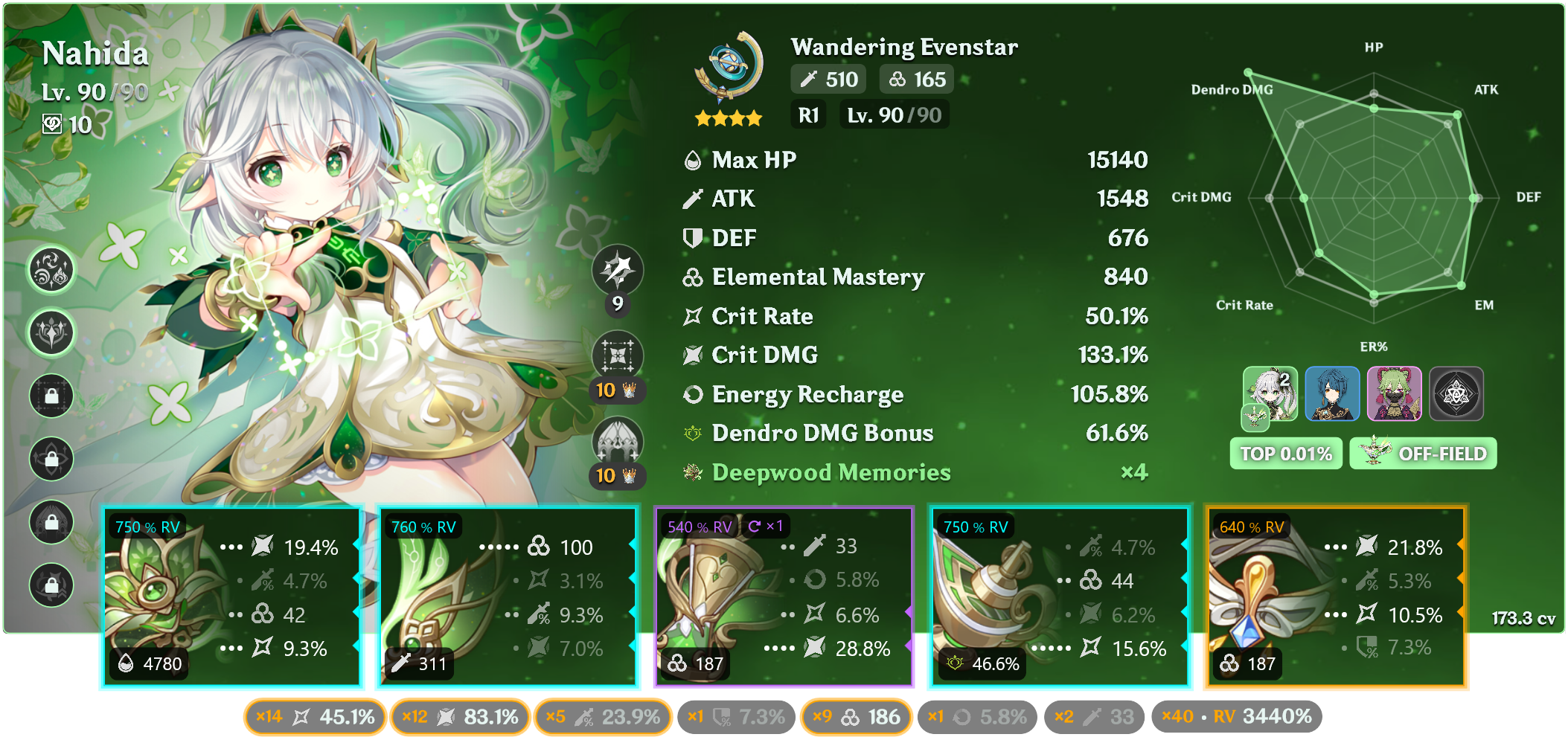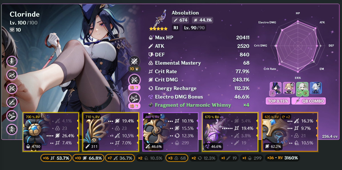 >>543261236Not 100% sure if this is my absolute best overall, but it is my favorite unit in the game, and it is my highest CV artifact build currently while also still being high on EM.So have a radish.