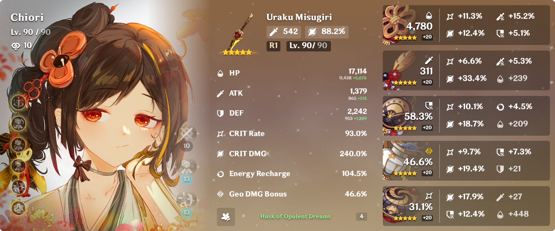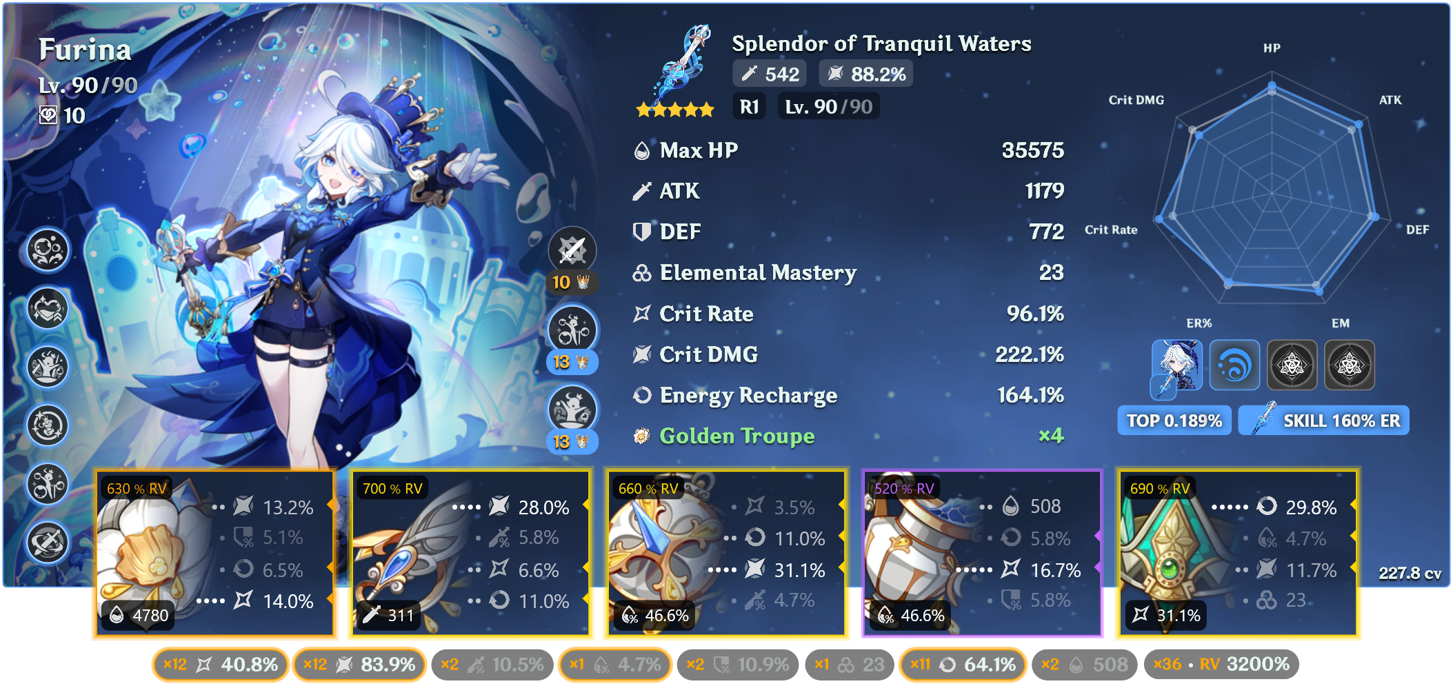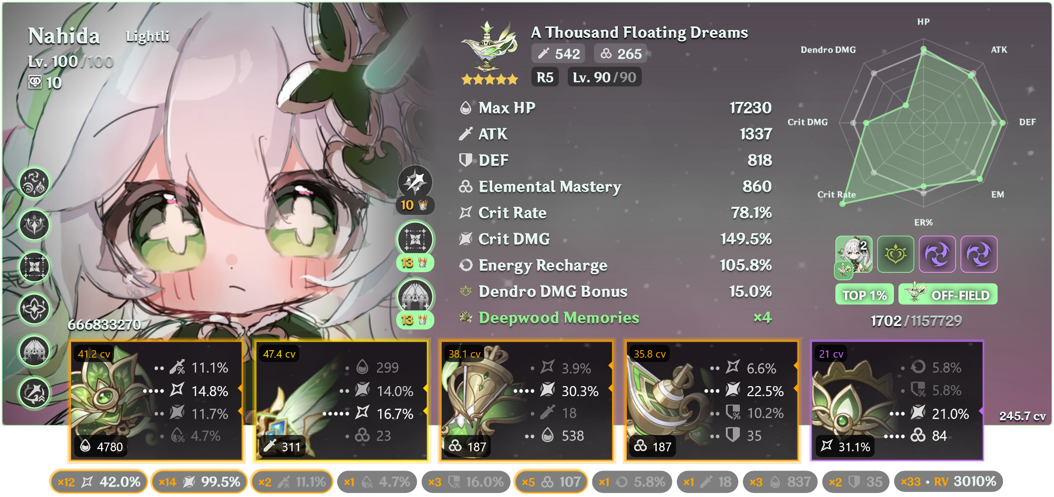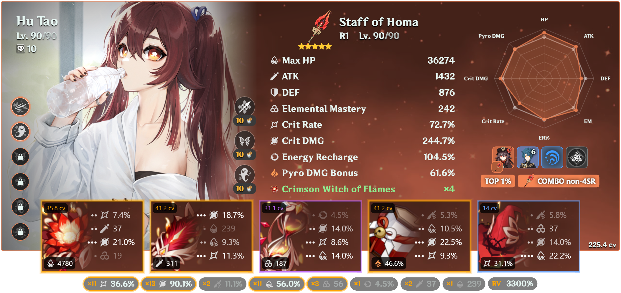 >>543261236Not 100% sure if this is my absolute best overall, but it is my favorite unit in the game, and it is my highest CV artifact build currently while also still being high on EM.So have a radish.