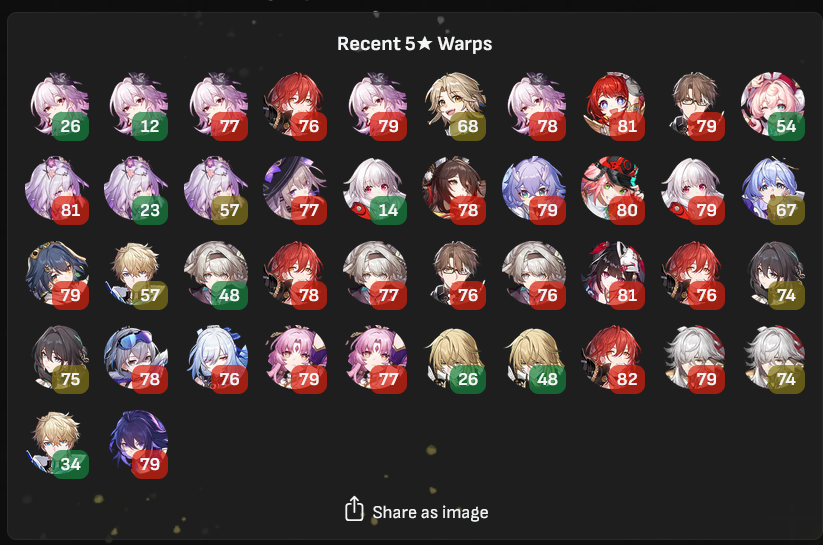 I have 77 pulls and the urge to pull dan heng cone is strong