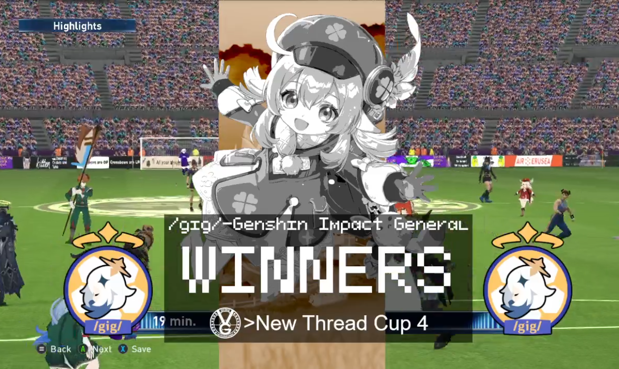 >>543295839whole team did well but if i have to name them, CEO conceded a lot of goals against /1999/ and EEEQEEE made herself get sacked with a red card same match