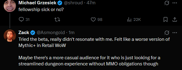 Asmongold said fellowship is doodoo