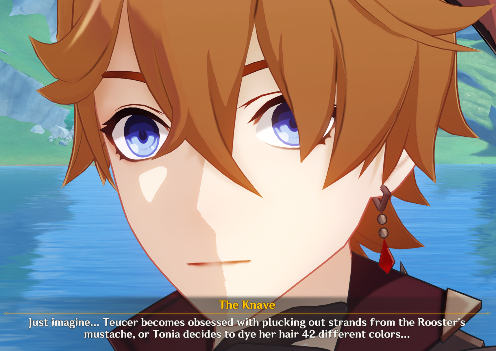 Nefer Voiceline leak>Master Diluc Ragnvindr is a key informant of mine in Mondstadt. I generally refer to him by the codename "Owl." As for how we met and came to work together... Well, out of consideration for his privacy, I won't go into the details. What I can say is this: working with Master Diluc is always a pleasure. At the very least... he pays promptly.