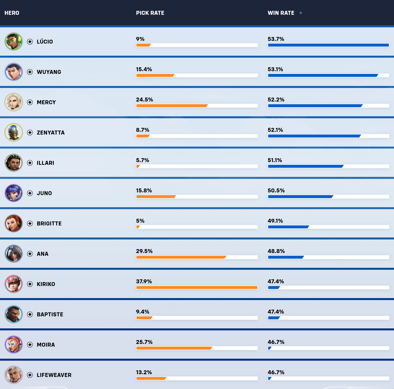 https://overwatch.blizzard.com/en-us/rates/?input=PC&map=all-maps&region=Americas&role=All&rq=2&tier=All