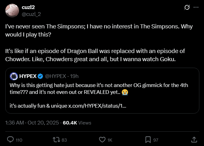 >>543393356>meowskulls tranny qrtthey're a massive consoomer and dickrider of this game so it's funny not even they're jumping on simpsons