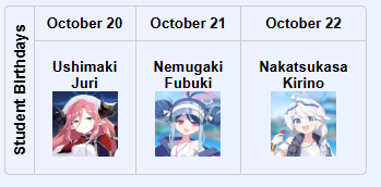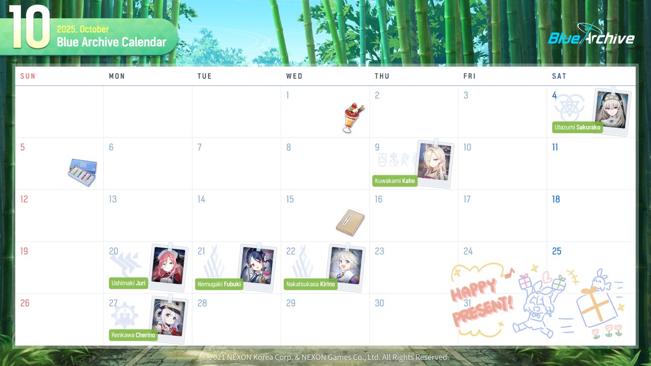 Previous Thread: >>543343734>Guides, Resources and useful links:https://rentry.org/bagguides>/bag/Circles/Clubs/Friends:https://rentry.org/holdingthebag>4koma, Manga, Side Content, PVs & Shortshttps://rentry.org/bacontent>>(JP)>Banners:>10/15 (Wed) 11:00 – 10/22 (Wed) 10:59 (JST)Hina (Swimsuit) (3* – Limited – Rerun)Iori (Swimsuit) (3* – Limited – Rerun)Mimori (Swimsuit) (3* – Rerun)>News:Livestream Summary: https://rentry.org/4chanBagStream10185th Anniversary Website: https://5th-anniversary.bluearchive.jp/Patch notes: https://bluearchive.jp/news/newsJump/589>Events:Balancing Schale's Books with the General Student Council – 10/15 (Wed) 11:00 – 10/22 (Wed) 10:59 (JST)Arius Autonomous Region Special Class – 9/17 (Wed) 11:00 – 10/22 (Wed) 10:59 (JST)>Content:Grand Assault: ShiroKuro (Indoor – Torment w/Light & Elastic Armor) – 10/15 (Wed) 11:00 – 10/22 (Wed) 3:59 (JST)Limit Break Assault: The Fury of Set (Field – w/Special Armor) – 9/25 (Thu) 11:00 – 10/22 (Wed) 3:59 (JST)2x Commissions – 10/15 (Wed) 4:00 – 10/22 (Wed) 3:59 (JST)>>(GLOBAL)>Banners:>10/14 (Tue) 2:00 – 10/21 (Tue) 1:59 (UTC)Pina (Guide) (3*)Tsubaki (Guide) (3* – Rerun)Umika (3* – Rerun)>News:Patch notes: https://forum.nexon.com/bluearchive-en/board_view?thread=3142901>Events:[Rerun] Rowdy and Cheery – 10/14 (Tue) 2:00 – 10/21 (Tue) 1:59 (UTC)>Content:Grand Assault: ShiroKuro (Indoor – Torment w/Elastic Armor) – 10/14 (Tue) 2:00 – 10/20 (Mon) 18:59 (UTC)Limit Break Assault: Tiphareth (Indoor – w/Elastic Armor) – 9/24 (Wed) 2:00 – 10/20 (Mon) 18:59 (UTC)2x Scrimmage/Hard – 10/13 (Mon) 19:00 – 10/20 (Mon) 18:59 (UTC)2x Normal – 10/20 (Mon) 19:00 – 10/27 (Mon) 18:59 (UTC)2x Commissions – 10/27 (Mon) 19:00 – 11/3 (Mon) 18:59 (UTC)