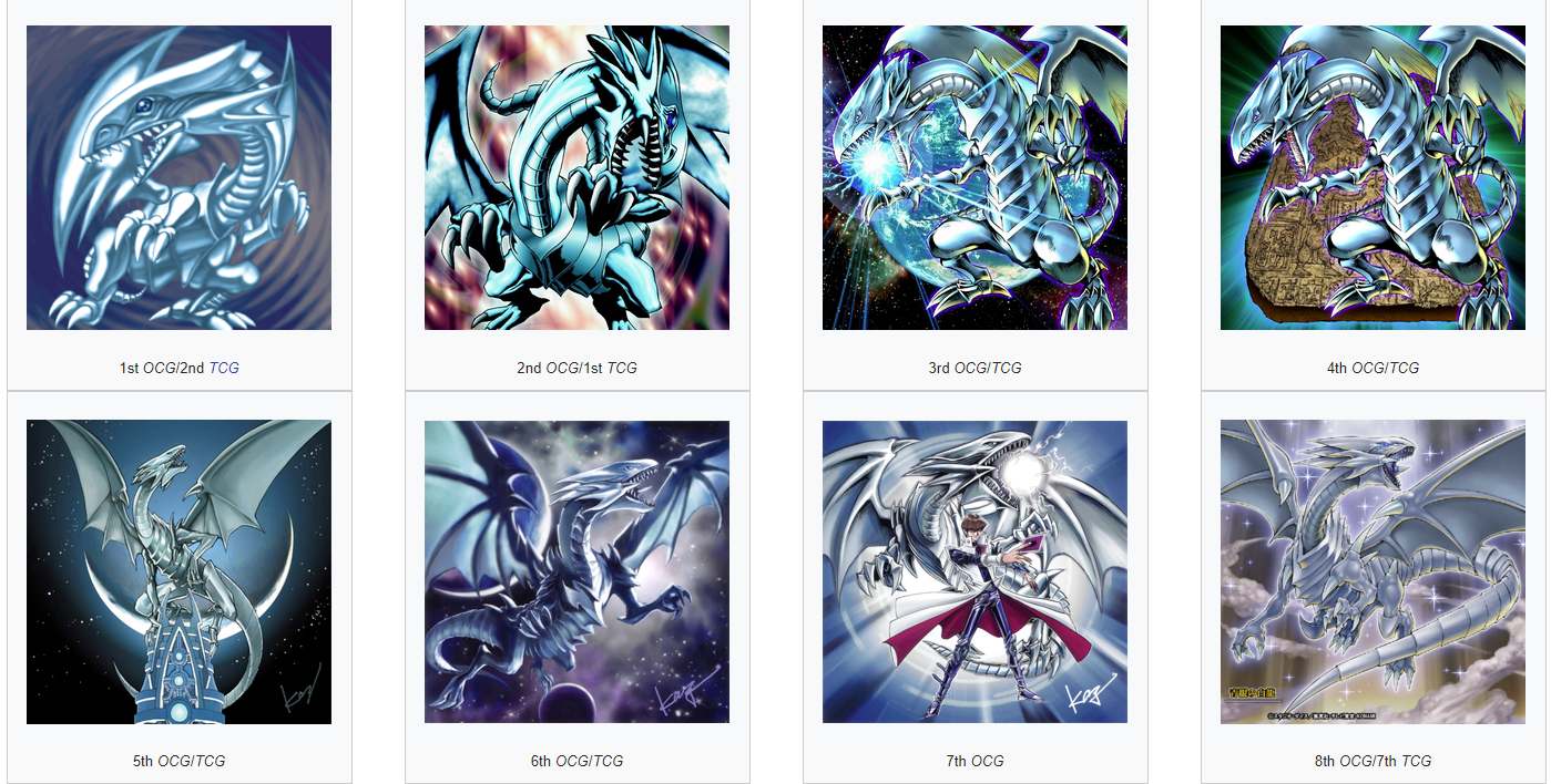 >>543389441I honestly would not be surprised if they just reused the Rush Duel Over Rush Rare artworks and call it a day.I genuinely wonder what Konami does all day when their main monsters barely get new artworks.Like Blue-Eyes has so much reused and recycled artwork its insane.>FIVE artworks with the same copied and pasted Blue-Eyes>TWO artworks reusing Duel Arena assets>all THREE Rush Duel artworks are just redrawn copies of existing OCG artworksThere are 20 Blue-Eyes artworks and I count 9 or 10 actual unique drawings (10 if you count Duel Arena asset reuse). Hell, some of those artworks are also technically copies redrawn from existing artwork (like the 9th OCG artwork redrawn from a manga panel).