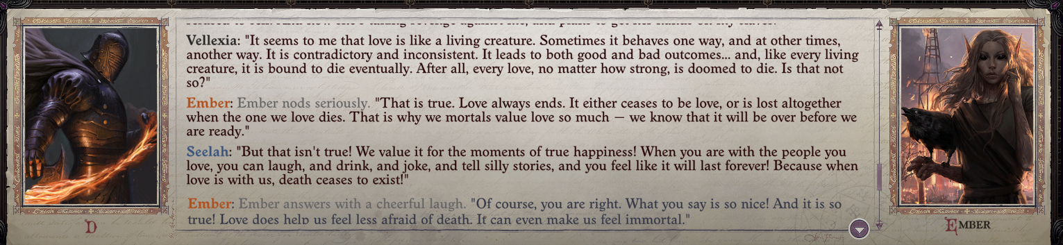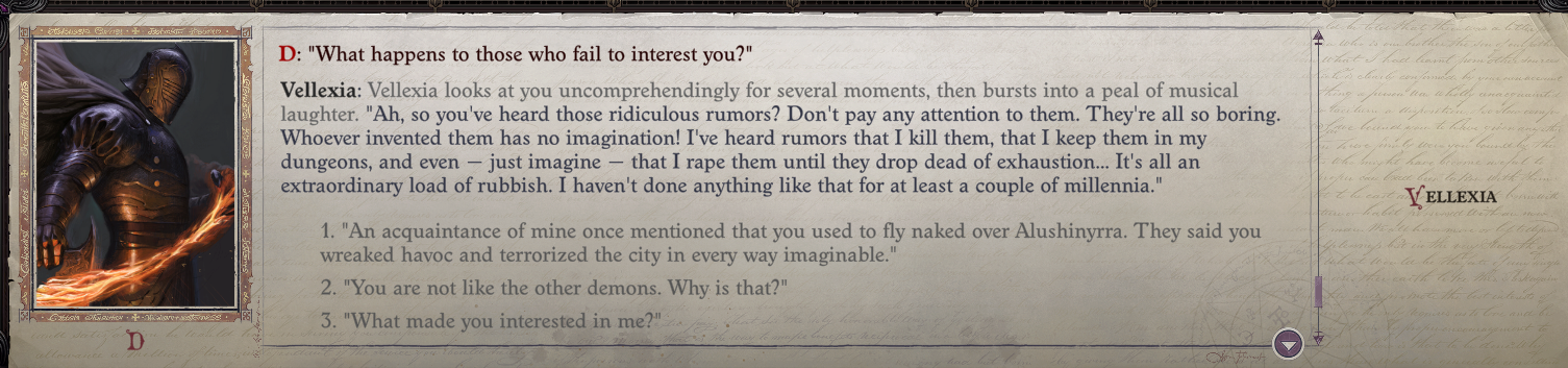 >>543441789It's 40K it's not some fairy tale fantasy happy land where fucked up shit doesn't happen. The Dark Eldar are incredibly evil and vile xenos and that absolutely extends to sexual depravity as well, Owlcat should've portrayed it in full so the players fully felt and appreciated how fucked up they are and why the Imperium is ultimately justified in its xenocidal policies. Players should've walked away from Commoragh with a seething, burning hatred of the Dark Eldar and everything about them, and I just feel like due to Owlcat pulling punches that just didn't happen, the entire segment didn't have the weight and gravitas it should have had since it was, at best, a PG-13 version of what would've occurred.