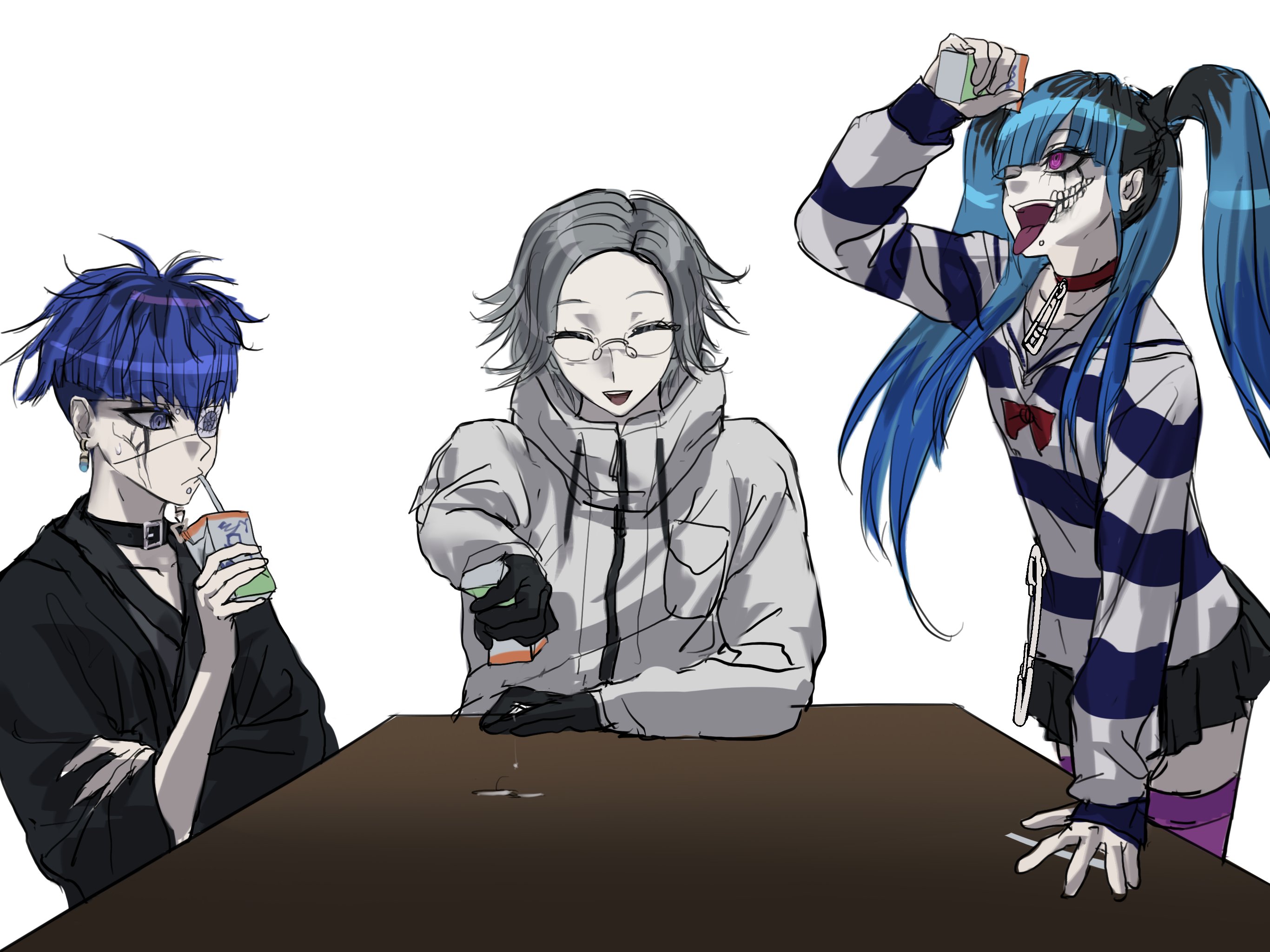 My Eitaku doujins (x3) came in today!First story I read with the help of google TL is about Rebellion Eito x Rebellion Takumi x CoT Eito threesomeCoT Eito has murdered everyone aside from living idol Takumi who's medicine wore off and ran away. Presumably after that he found the leap machine and has spent time travelling to different loops, he stumbled into the rebellion route where Takumi is looking at the bomb that Eito gave him while thinking about meetings and that kinda stuff (lazy Takumi doesn't wanna do it). He opens the door (which has the decision drawing on it, very cute) and out comes CoT Eito! He instantly hugs Takumi and muses on that it's truly his feelings of love for him and that the medicine has nothing to do with it and that Nozomi was wrong, Takumi assuming that he means Nozomi was wrong for sacrificing herself or something grabs him but they clear up the misconception and CoT Eito decides to rape him but they're interrupted by Rebellion Eito who's like "TAKUMI I'VE BEEN WAITING IN A CLASSROOM WHAT IS YOUR UGLY ASS DOING?!" and he sees himself who he assumes is a fake, CoT Eito grabs the bomb that Takumi had and threatens to kill Rebellion Eito before Takumi clears up the situation and CoT Eito recommends that they have a threesome while playing with Takumi's nipples. Rebellion Eito asks why he wants to have sex with something so disgusting and because Rebellion Eito wants to understand he pins Takumi down and lets CoT Eito molest him, he recommends that he give Takumi a blowjob which he tries to but gets too disgusted and stops and CoT Eito calls him childish. He shoves Takumi into Rebellion Eito's dick and forces him to give him a blowjob (saying stuff like "don't you want to become closer friends with him?") while fingering him and then raping him. Takumi yells out to Rebellion Eito to help him and that he doesn't want this while it cuts to his POV where Takumi is still a monster.1/2