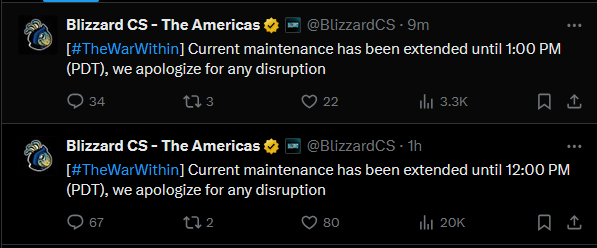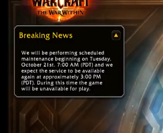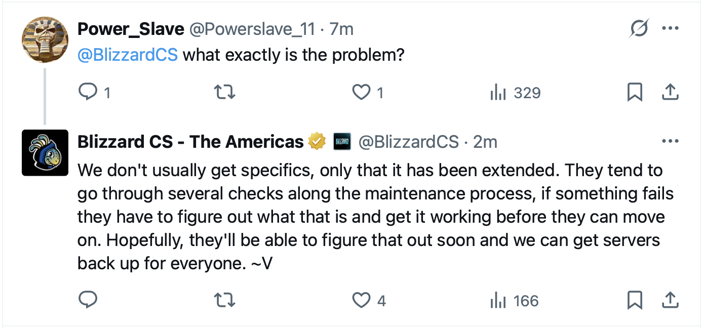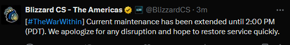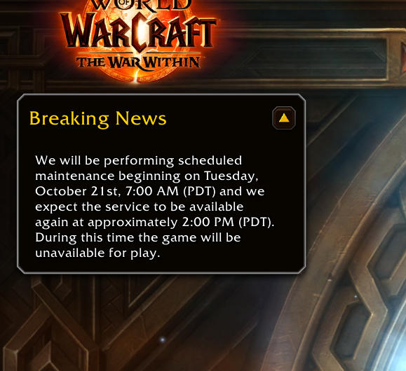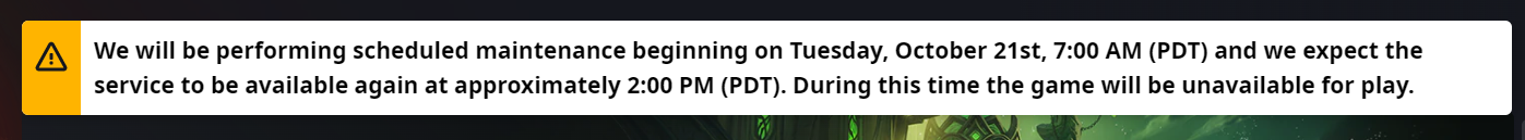>1 hour til maintenance endsi always joked that blizzard had worse uptime than private servers but this is the second time in like 3 days ive experienced long periods of downtime