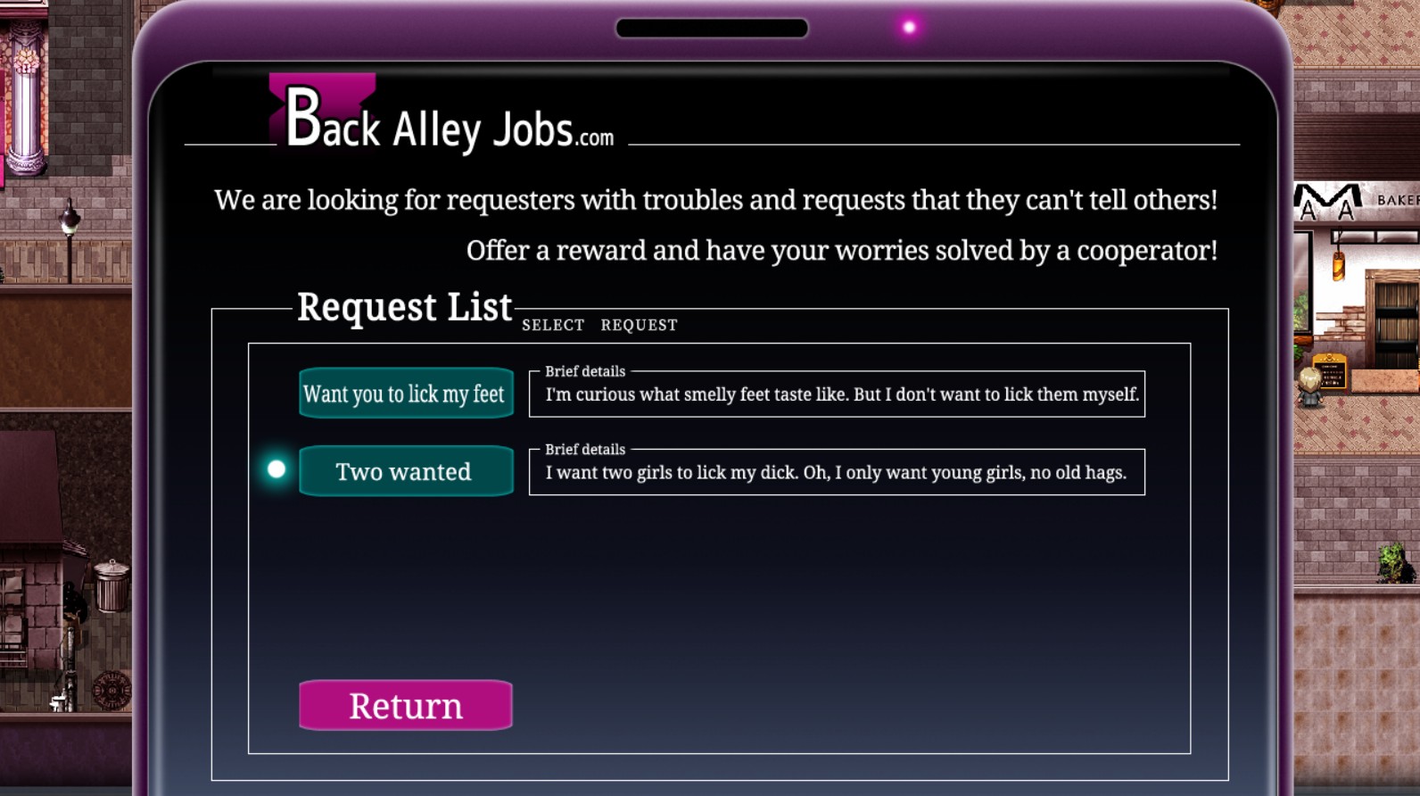 >>543545885Yeah there is endless potential even gameplay wise. At first you can only buy a few cheap cameras that you have to personally install but after a while you get a surveillance network and guys working under you.You can hire ugly bastard, handsome chad, shota king etc. to send to your targets.
