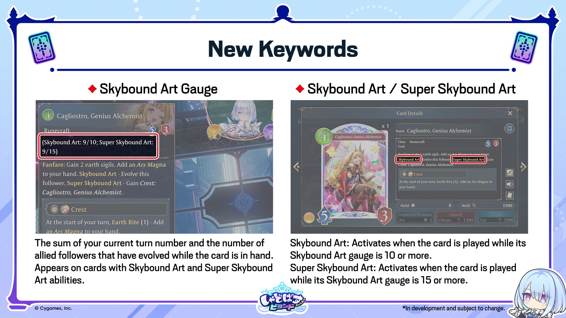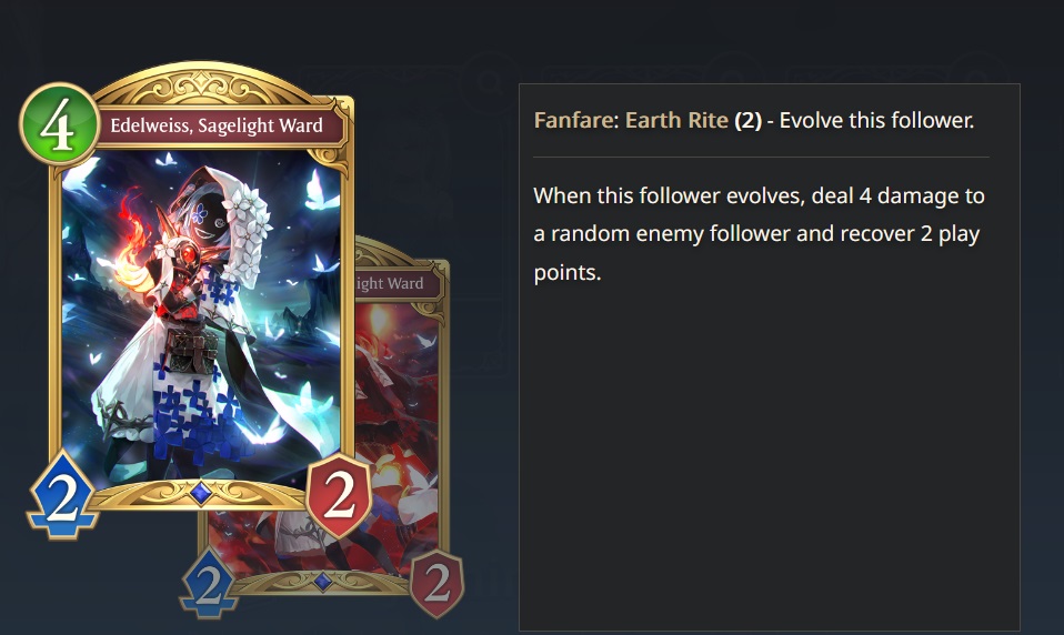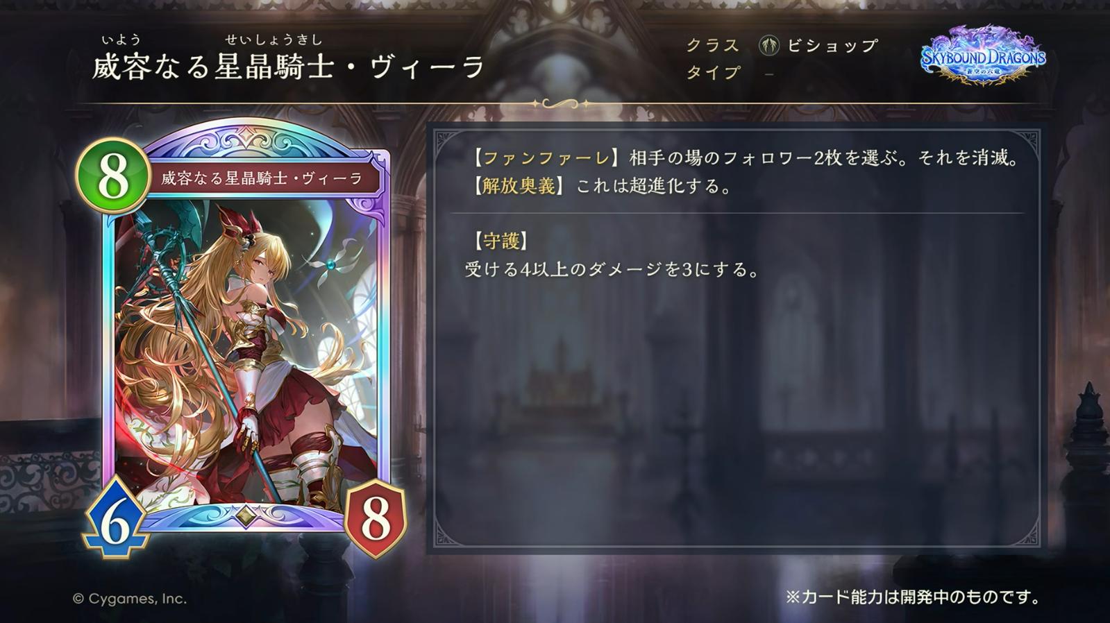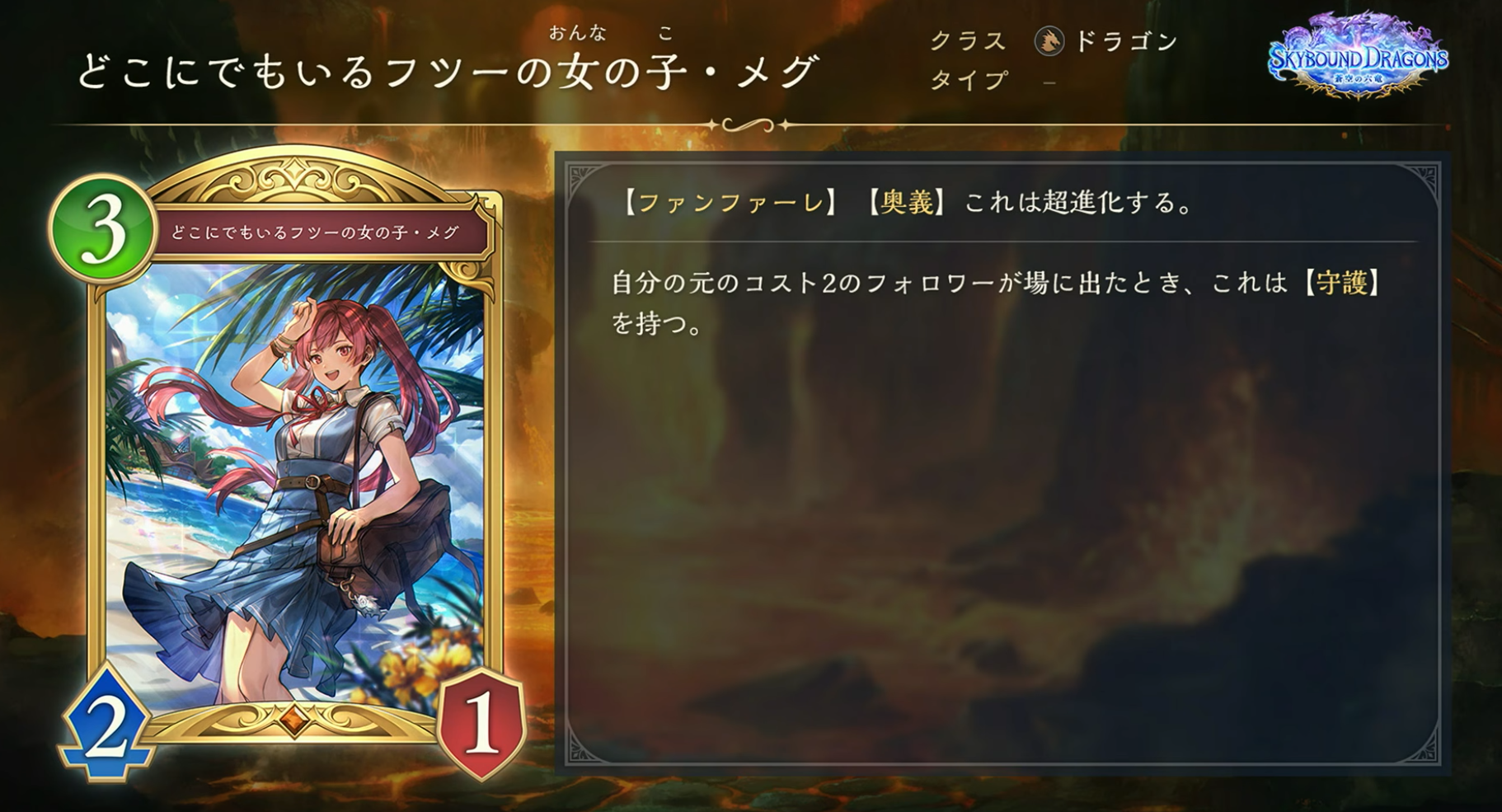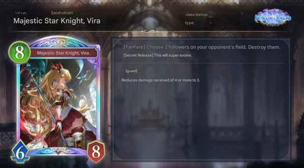 Activates when the card is played while its Skybound Art gauge is 15 or more. A card's Skybound Art gauge is the sum of your current turn number and the number of allied followers that have evolved while it is in hand.