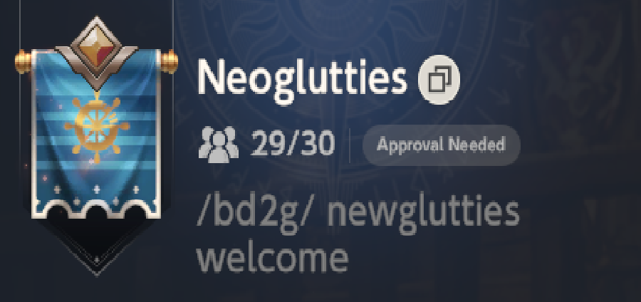 Last advertise before the raid startNeoglutties has space for 1 more player, we are 100% ok with new players, as long as you are playing the game and doing your G.raid fights you are good.just reply to this post with your username or have /bd2g on your profile. i just need something to know you are from here