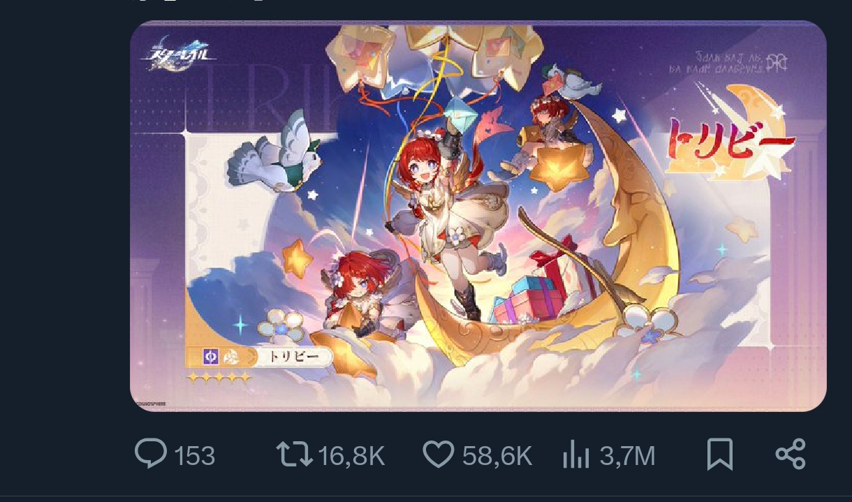 Previous: >>543492263>Version 3.7 "As Tomorrow Became Yesterday" Special Program will release on 2025/10/24 19:30 (UTC+8)https://www.youtube.com/watch?v=Sx7xZp96nZMhttps://www.youtube.com/watch?v=15x3KOhWsf4>Download - https://hsr.hoyoverse.com/en-us/home>3.6 Preview Page - https://act.hoyoverse.com/puzzle/hkrpg/e20250912version_1303/index.html>Version 3.6 Trailer — Back to Earth in Evernighthttps://www.youtube.com/watch?v=_2B_woXdf_Ehttps://www.youtube.com/watch?v=7G2ErfYy2TI>Dan Heng • Permansor Terrae Character Trailer: "Home"https://www.youtube.com/watch?v=m-pQBgRsXJIhttps://www.youtube.com/watch?v=mFnxGYaMpDE>Animated Short: "Trek"https://www.youtube.com/watch?v=Msj-hOY9u0Ahttps://www.youtube.com/watch?v=n0F5_9L-KKY>Current Character Banners: Dan Heng • Permansor Terrae, Anaxa + Sushang, Hanya, Serval - https://www.hoyolab.com/article/41743443>New Drip Marketing:>The Dahlia (5* Fire Nihility) - https://www.hoyolab.com/article/41861857>Redeemable Codes - https://hsr.hoyoverse.com/gift9BJ8YE37HM8BFREEDANHENGSTARRAILGIFT>/hsrg/ Tools & Resourceshttps://rentry.org/hsrg-resources-14>/hsrg/ Thread Templatehttps://rentry.org/hsrg-thread-template-14
