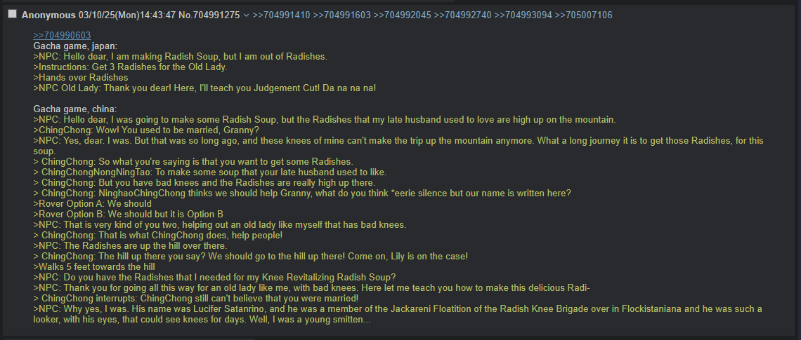 >>543531196why make generic ones thoughevery single game bothers to write unique material for every character because they're aware characters sell a game while this posg is the only thing that somehow decided having generic dates to cut costs would be a good idea