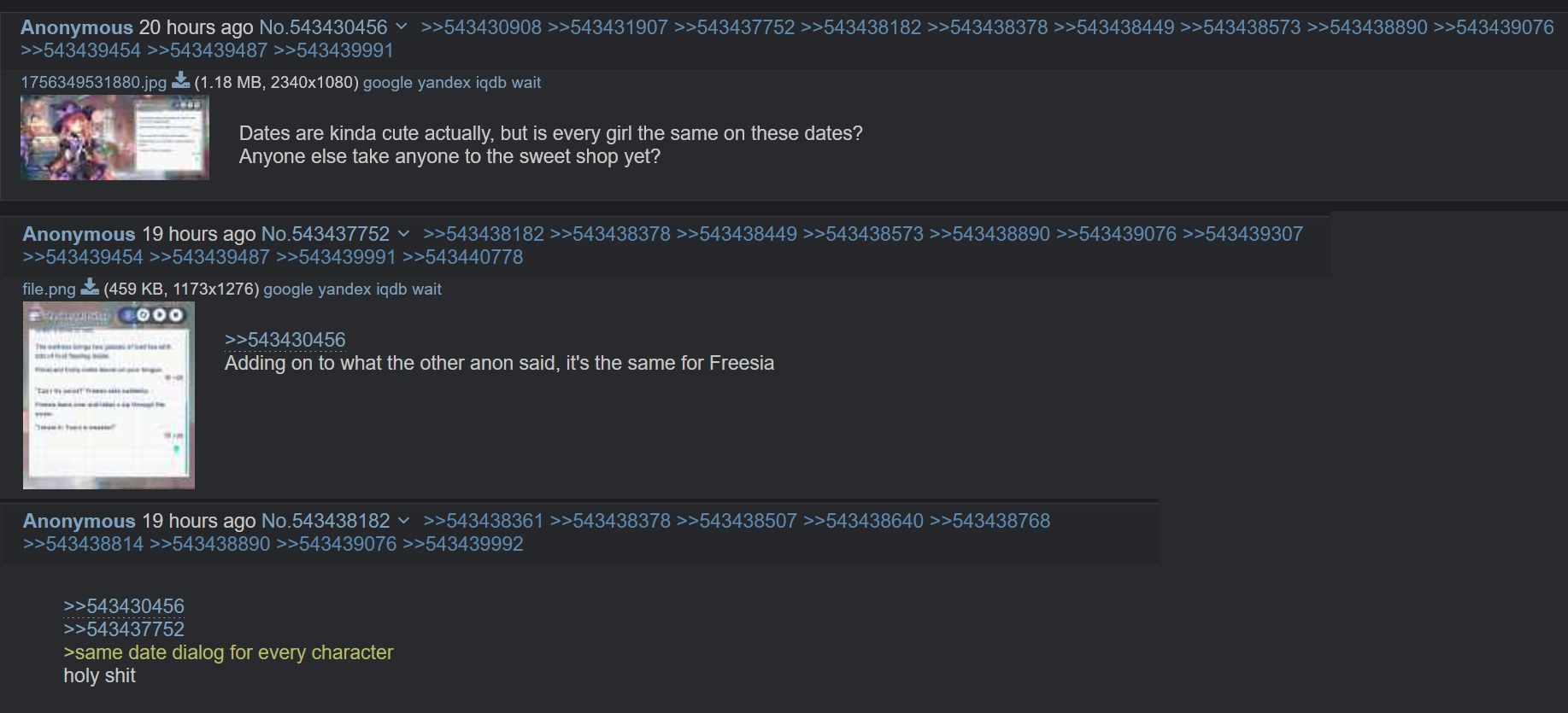 >>543530978I’m considering waiting for them to inevitably write unique dates for everyone before I do them, although there’ll probably be a way to replay them