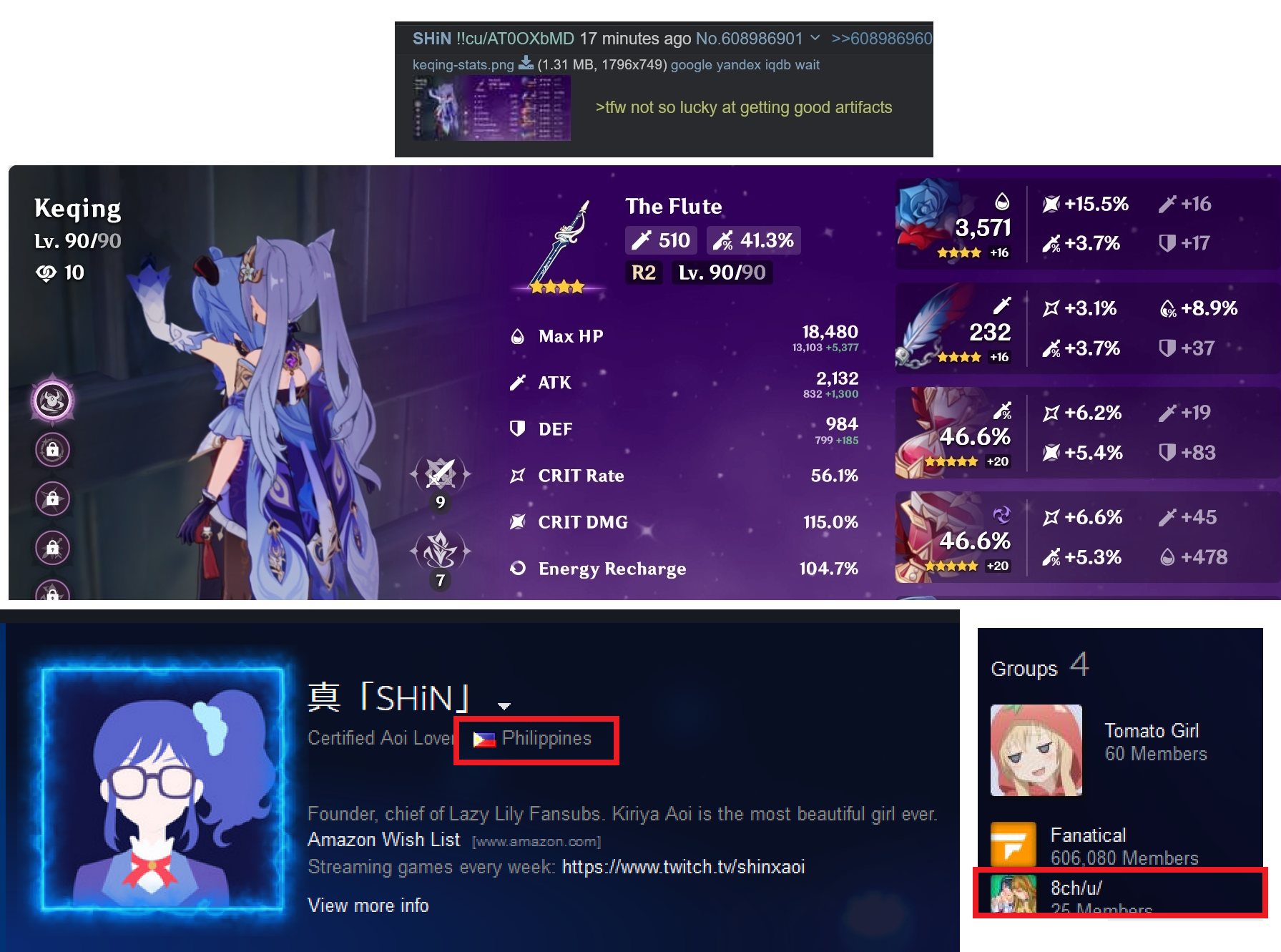 >>543547139>Only going to know that if you've said it in a way that makes you very uniqueNo, that would be on 4chan. In your beloved ID world, he'd know based on other clues.For example if you regularly say you love Kohaku and in the same thread make posts with screenshots of the game that includes your team.Now he knows your team, and he knows you're the Kohakufag who shat on Seina.Then in #866 you make 2 posts, they can be hours apart. A gameplay post with the same team, and a post about how much of a goddess Kohaku is. That immediately links you to #846. Later in that thread, the situation I said earlier happens. Being a tripfag is being food for stalkers.
