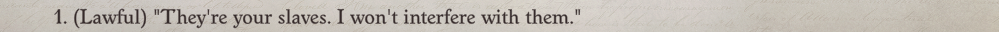 >>543671623>>543671691for me, it's the extra campaign where they ask you if you're really going to take a fucking ghoul with you to a public space and you can tell them it's okay: you've done it like a dozen times and gaichu backs you up, not even questioning it anymore