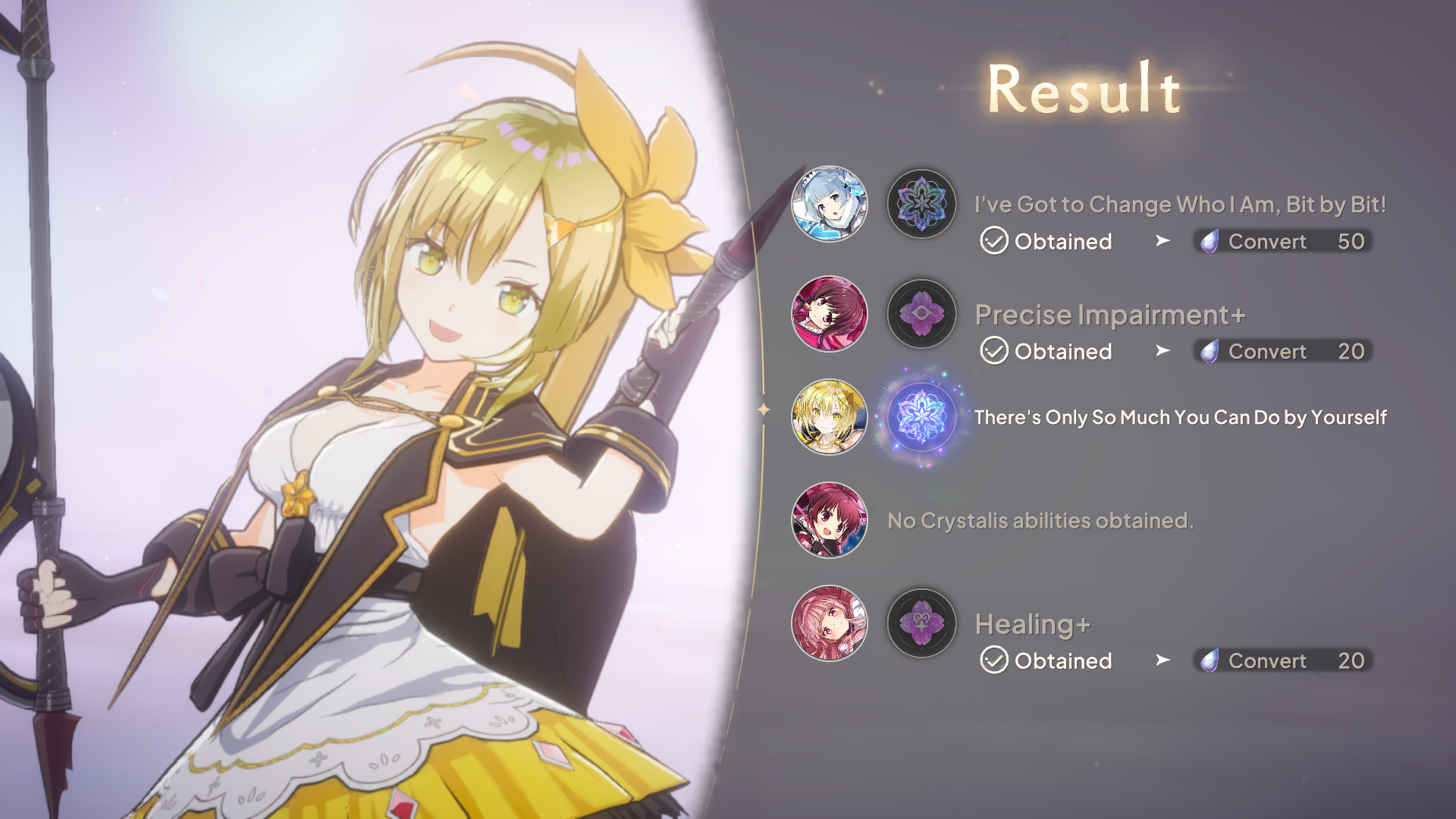 This game really gives you a lot of free pulls and guaranteed girls. Right now I have 8 guaranteed 5* , but I'm not using them because I'm afraid of A6+, there just aren't many girls in the pool yet. It's so generous that I sometimes wonder how it makes money at all, and the answer, of course, is low rates for the banner girls and a low gems income. So, you get a lot of girls in general, which will allow you to play freely and always have something to develop, but if you want a specific girl more than once every 2 months, you will have to pay. And that's the whole point of gacha- as honest as this kind of thing can be.