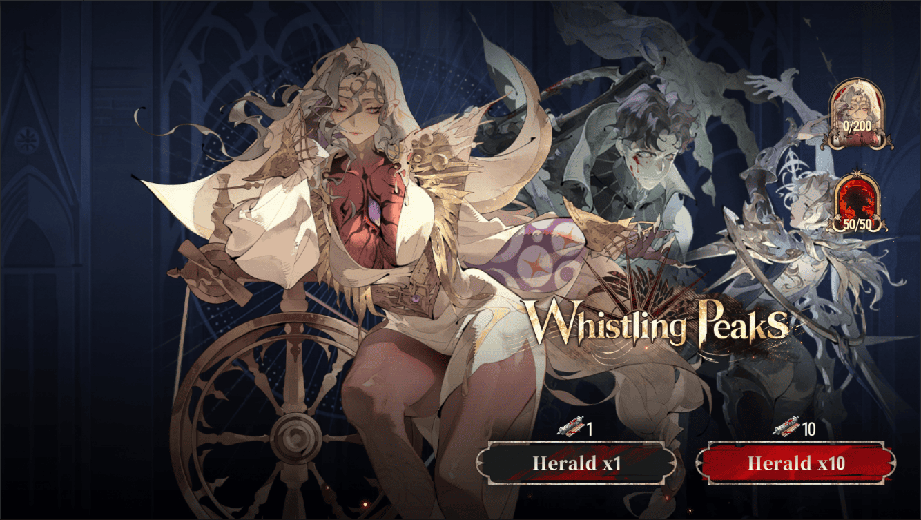 ※The Vassals included in the Synergistic Herald Event [Whistling Peaks] are SSR Vassals Van Helsing, Tris, Thibault, and Ressa, along with Standard Ancestral Vassals.