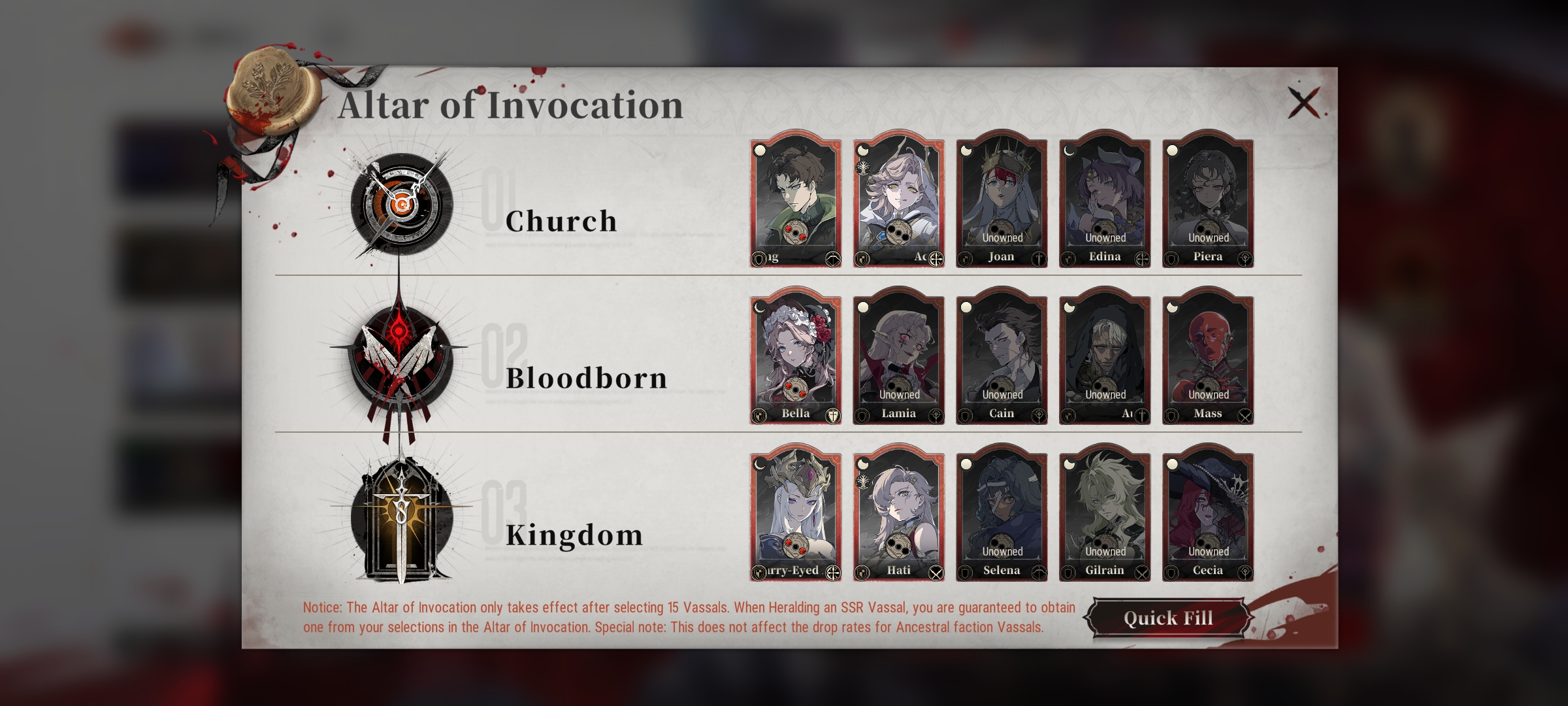 It's only 40 slots in total and there's like 45+ SSR vassals
